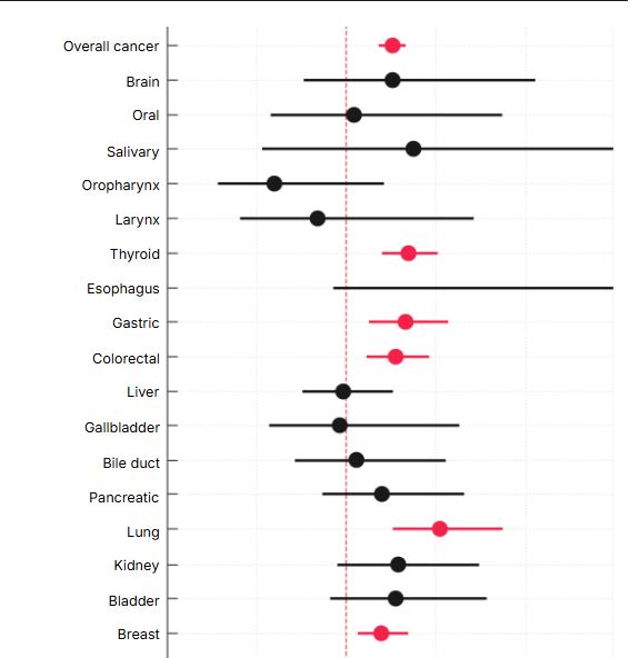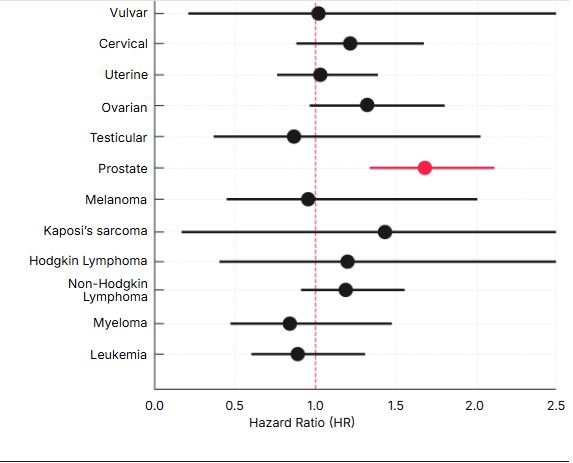 ជាលទ្ធផលមួយឆ្នាំក្រោយមក ក្រុមអ្នកស្រាវជ្រាវបានរកឃើញថា អ្នកដែលចាក់វ៉ាក់សាំងយ៉ាងតិចមួយលើក មានអត្រាហានិភ័យកើតមហារីកក្រពេញទីរ៉ូអ៊ីតចំនួន ៣៥% មហារីកក្រពះ ៣៤% មហារីកសួត ៥៣% និង មហារីក្រពេញប្រូស្ដាត ៦៨%។ ជាមួយគ្នានោះសម្រាប់ហានិភ័យមហារីកសុដន់វិញក៏កើនឡើង ២០% និង មហារីកពោះវៀនធំចំនួន ២៨%៕