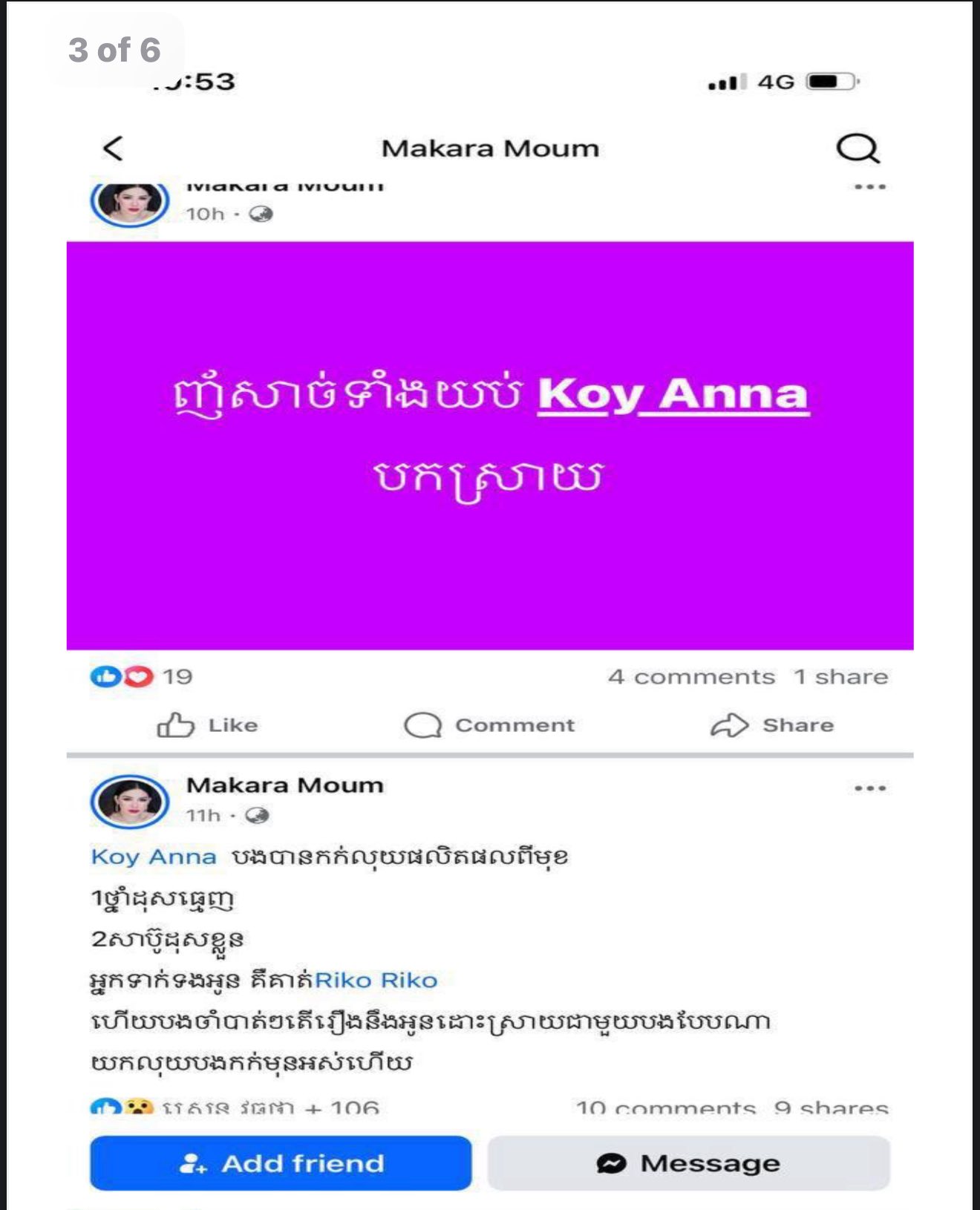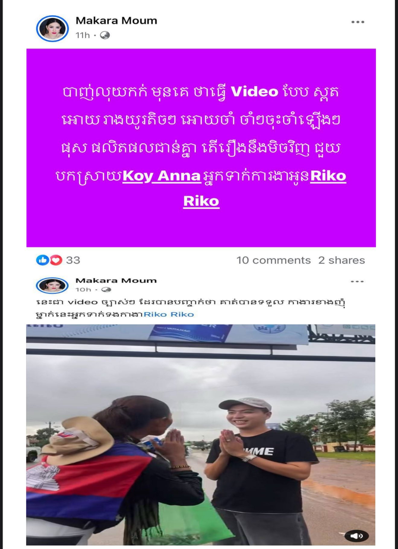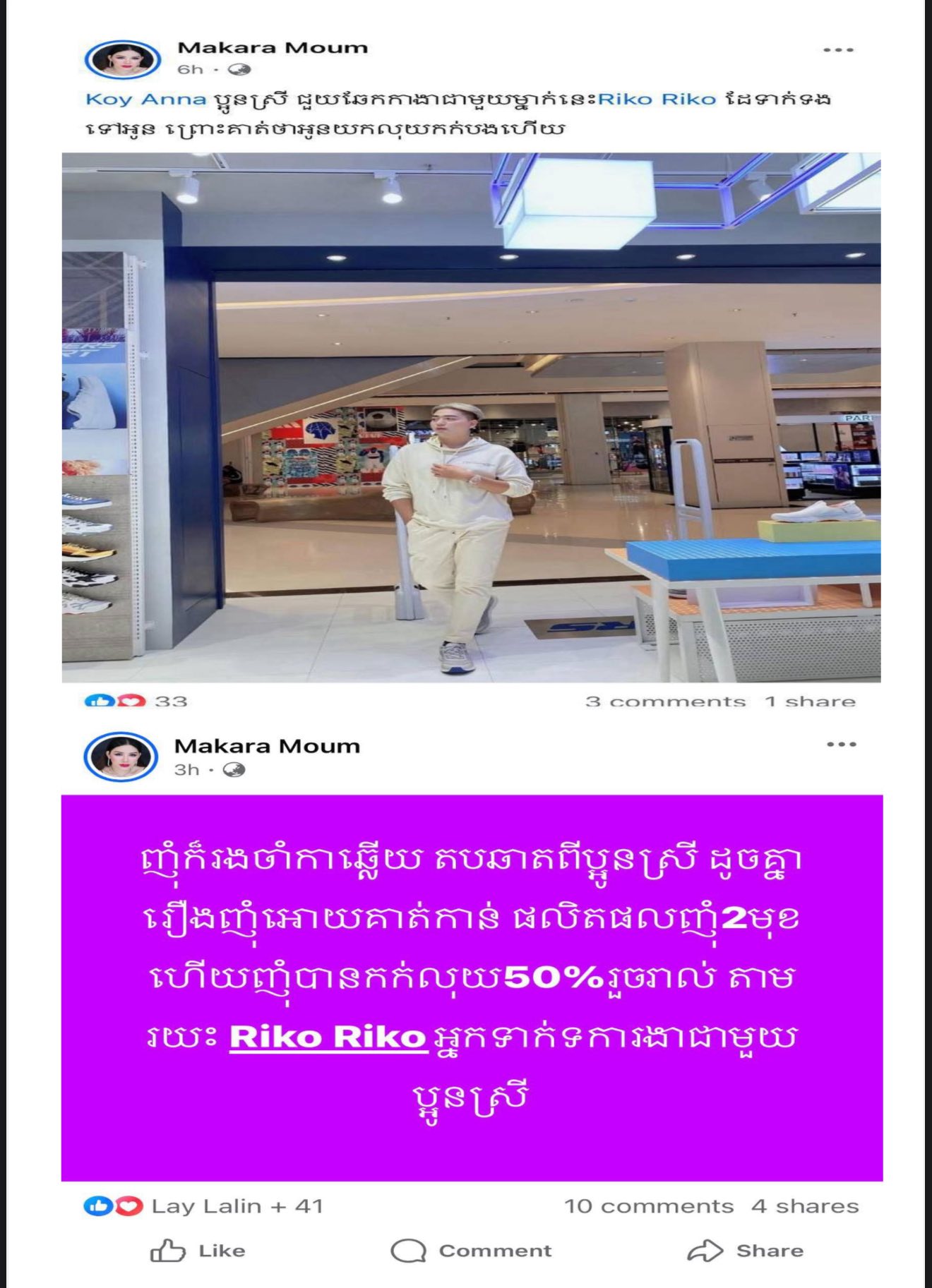 តាមរយៈលិខិតបំភ្លឺនេះបានឱ្យដឹងថា គណនីហ្វេសប៊ុក Makara Moum (ហេង មករា) បានបង្ហោះសារជាច្រើន ទាក់ទងនឹងការងារផ្សព្វផ្សាយផលិតផល ដោយបាននិយាយសំដៅលើបវរកញ្ញា កុយ អេនណា ថាទទួលធ្វើការងារផ្សព្វផ្សាយផលិតផលឱ្យក្រុមហ៊ុនរបស់ខ្លួន និង បានទទួលលុយកក់រួចហើយ តែមិនមានឃើញការបង្ហោះផ្សព្វផ្សាយផលិតឱ្យក្រុមហ៊ុន ជាហេតុធ្វើឱ្យគណនីហ្វេសប៊ុកខាងលើ បានបង្ហោះសារឱ្យកញ្ញា កុយ អេនណា និង អ្នកទាក់ទងការងារឈ្មោះ Riko Riko ចេញមកទទួលខុសត្រូវ។
