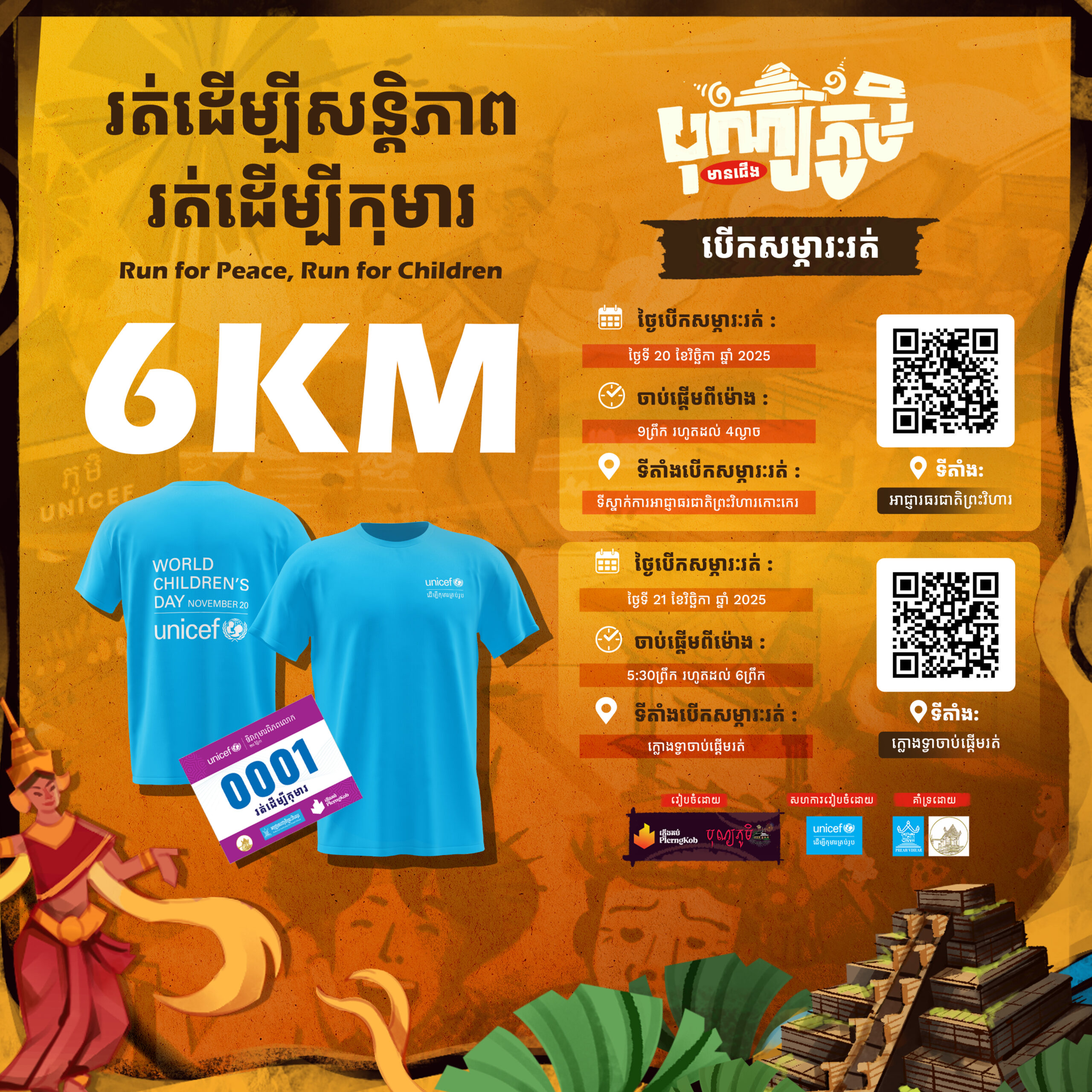 + ពេលព្រឹក៖ បុណ្យភូមិមានជើង នឹងរៀបចំការរត់ដើម្បីសន្តិភាព និងសិទ្ធិកុមារ នៅឯប្រាសាទកោះកេរ ព្រមទាំងបើកកម្មវិធី ពីយូនីសេហ្វ ដើម្បីប្រារព្ធទិវាកុមារពិភពេលាកនៅបរិវេណប្រាសាទ។