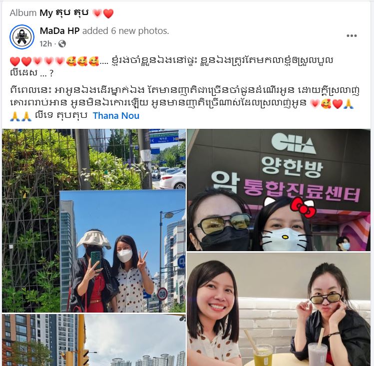ក្នុងនោះ បងស្រីរបស់ពិធីការិនី នូ មៈនេត្រអាថាណា បានបង្ហោះរៀបរាប់ថា ៖ «ខ្ញុំរង់ចាំខ្លួនឯងនៅផ្ទះ ខ្លួនឯងត្រូវតែមកលាខ្ញុំឱ្យស្រួលបួល ឮដេស … ? ពីពេលនេះ អាអូនឯងដើរម្នាក់ឯង តែមានញាតិជាច្រើនចាំជូនដំណើរអូន ដោយក្ដីស្រលាញ់ គោរពរាប់អាន អូនមិនឯកោឡើយ អូនមានញាតិច្រើណាស់ដែលស្រលាញ់អូន ឮទេ តុបតុប Thana Nou»៕