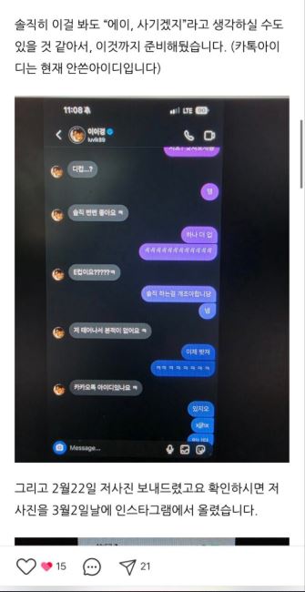 «សួស្ដី! នេះគឺជាគណនីដែលបង្ហោះពី Lee Yi Kyung មុននេះ។ ក្រឡេកមើលលើការឆ្លើយតប ខ្ញុំក៏ឃើញថាគ្រប់គ្នាលើកឡើងថាខ្ញុំធ្វើដើម្បីចង់បានលុយ? ខ្ញុំពិតជាភ្ញាក់ផ្អើល ព្រោះតែនេះជាលើកទីមួយហើយដែលខ្ញុំឮការនិយាយមកខ្ញុំបែបនេះ។ មែន! ខ្ញុំពិតជាបានសុំលុយគាត់ម្ដងមែន ខ្ញុំមានបញ្ហាលុយកាក់ និង មិនអាចសុំឪពុកម្ដាយរបស់ខ្ញុំបានឡើយ ប៉ុន្តែខ្ញុំមិនបានទទួលលុយអ្វីពីគាត់ឡើយ ហើយពួកយើងនៅតែទាក់ទងគ្នាដូចធម្មតា។ វាពិតជាឈឺចិត្តណាស់ពេលសុំគេបែបនេះ វាពិតជាមិនស្រណុកនោះឡើយ ព្រោះខ្ញុំមិនដែលធ្លាប់ការជួយពីនរណាម្នាក់ឡើយ ជាពិសេសរឿងលុយនេះតែម្ដង។ ខ្ញុំក៏មិនដែលសុំលុយគាត់ទៀតដែរ ហើយការបង្ហោះរបស់ខ្ញុំកាលពីម្សិលមិញនេះក៏មិនមែនដើម្បីសុំលុយនោះដែរ ប៉ុន្តែខ្ញុំគ្រាន់តែចង់ការពារមនុស្សស្រីផ្សេងទៀតកុំឱ្យក្លាយជាជនរងគ្រោះដោយពាក្យសម្ដីមិនសមរម្យរបស់គាត់។