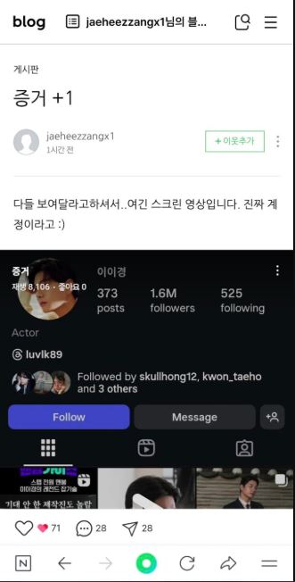 នារី «A» ក៏បាន screen recording video គណនីផ្លូវការរបស់ Lee Yi Kyung ផងដែរ។ បច្ចុប្បន្ន ខាងតារាសម្ដែង Lee Ki Kyung និង ភ្នាក់ងាររបស់លោកមិនទាន់ចេញការឆ្លើយតបចំពោះការបង្ហោះថ្មីនេះនៅឡើយទេ៕
