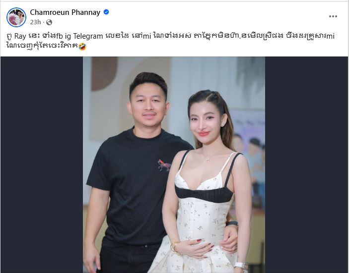 លើហ្វេសប៊ុកផេករបស់អ្នកនាង ស្រីណៃ បានរៀបរាប់ថា «ពូ Ray នេះ ទាំង Fb Ig Telegram លេខដៃ នៅ Mi ណៃទាំងអស់ តាភ្នែកមិនហ៊ានមើលស្រីផង អ៊ីចឹងដកគ្រួសារ mi ណៃ ចេញកុំតែចេះវិភាគ»។ ជាមួយគ្នានោះ ស្វាមីរបស់ ស្រីណៃ ក៏បានបង្ហោះរៀបរាប់ដែរថា ៖ «អស់ស្មោះត្រឹមប្តីម្នាក់ហើយបាទ បើបងប្អូនណាឃើញមិនល្អនៅក្រៅ ផ្ញើឱ្យប្រពន្ធខ្ញុំចុះ ជូនសាគុណ 1 លាន $ បាទ»៕