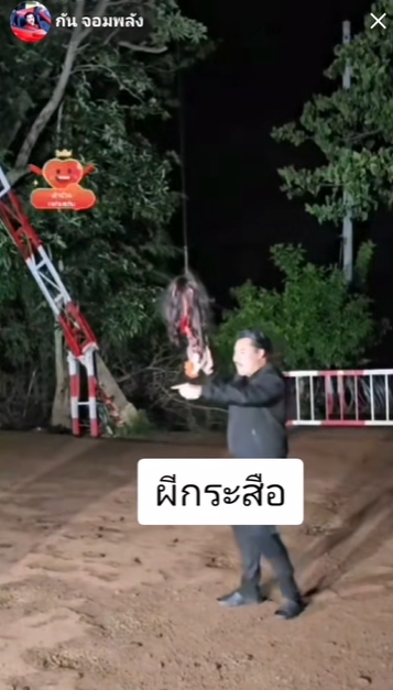 ក្នុងនោះ កាលពីយប់ថ្ងៃទី ១៣ ខែតុលា ឆ្នាំ ២០២៥ កន្លងទៅនេះ Gun Jompalang បានរកនឹកឃើញគំនិតស្មោកគ្រោកថ្មីមួយទៀត ដើម្បីមកបំភ័យប្រជាជនខ្មែរ គឺបានយកក្បាលម៉ានីកាំងច្នៃជាខ្មោចអាប រួចភ្ជាប់ជាមួយនឹងដ្រូន ហើយបញ្ជាឱ្យហោះពេញទឹកពេញដីឱ្យប្រជាជនខ្មែរឃើញ។ ក្នុងវីដេអូ បានបញ្ជាក់ឱ្យឃើញថា Gun Jompalang ពិតជាមានមោទកភាពជាមួយនឹងគំនិតថោកទាបរបស់ខ្លួនណាស់ រីឯប្រជាជនថៃនៅក្បែរនោះក៏បាននាំគ្នាសរសើរលើកជើងមិនដាច់ពីមាត់ទៀត។