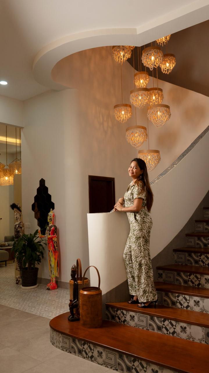លោកស្រីបានធ្វើការផ្ទាល់ជាមួយបុគ្គលមានទេពកោសល្យនៅកម្ពុជា រាប់តាំងពីស្ថាបត្យករ អ្នកច្នៃម៉ូដ រហូតដល់សិប្បករ ដើម្បីបង្កើតកន្លែងស្នាក់មួយ បង្ហាញពីភាពសម្បូរបែបនៃសិល្បៈហត្ថកម្ម និង សម្រស់របស់ប្រទេសយើង។ លើសពីនេះ លោកស្រីបានដាក់បេះដូងក្នុងការរចនាគ្រឿងលម្អខាងក្នុងដោយផ្ទាល់ដៃ ដោយលាយបញ្ចូលគ្នានូវធាតុប្រពៃណីខ្មែរ និង គ្រឿងតុបតែង ដែលបង្ហាញពីអត្តសញ្ញាណវប្បធម៌ដ៏ល្អឯករបស់កម្ពុជា។