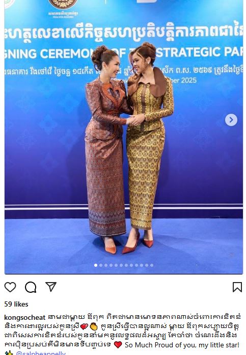 ក្នុងនោះ អ្នកនាង គង់ សុជាតិ បានបង្ហោះរៀបរាប់ថា ៖ «នាមជាម្តាយ ឪពុក ពិតជាមានមោទកភាពណាស់ចំពោះការខិតខំ និង ការងារល្អរបស់កូនស្រី កូនស្រីធ្វើបានល្អណាស់ ម្តាយ ឪពុកសប្បាយចិត្ត ជាពិសេសការខិតខំរបស់កូននាំមកនូវលទ្ធផលដ៏អស្ចារ្យ តែចាំថា ចំណេះដឹង និង ការប៉ិនប្រសប់ គឺមិនមានទីបញ្ចប់ទេ»៕