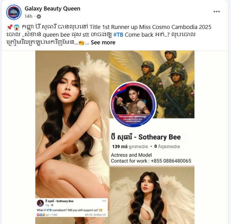 អ្នកគាំទ្រវិស័យបវរកញ្ញាដែលតាមដានកម្មវិធី Miss Cosmo Cambodia 2025 កន្លងមក ក្រៅពីចាប់អារម្មណ៍សរសើរពីរាជិនីម្ចាស់មកុដថ្មីប្រចាំឆ្នាំ ឃើញថាចំពោះលំដាប់រងទី ១ នៃ MCC 2025 កញ្ញា ប៊ី សុធារី ក៏មានភាពលេចធ្លោឆក់បានការគាំទ្រមិនធម្មតាដែរ។
