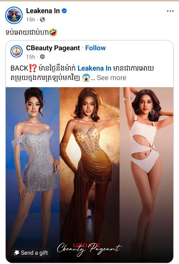 ដោយឡែក ក្រោយទទួលបានការលើកទឹកចិត្តពីអ្នកគាំទ្រជាច្រើន និង ស្របពេលឃើញសិស្សប្អូនកំពុងប្រកួតលើឆាកអន្តរជាតិ ថ្មីៗនេះ អ៊ិន លក្ខិណា បានបង្ហាញរូបភាព និង សកម្មភាពថ្មីៗបន្តបន្ទាប់ភ្ជាប់ជាមួយនឹងដំរួយចង់វិលត្រឡប់មកកាន់ឆាកប្រកួតដណ្ដើមមកុដជាថ្មីម្ដងទៀត៕