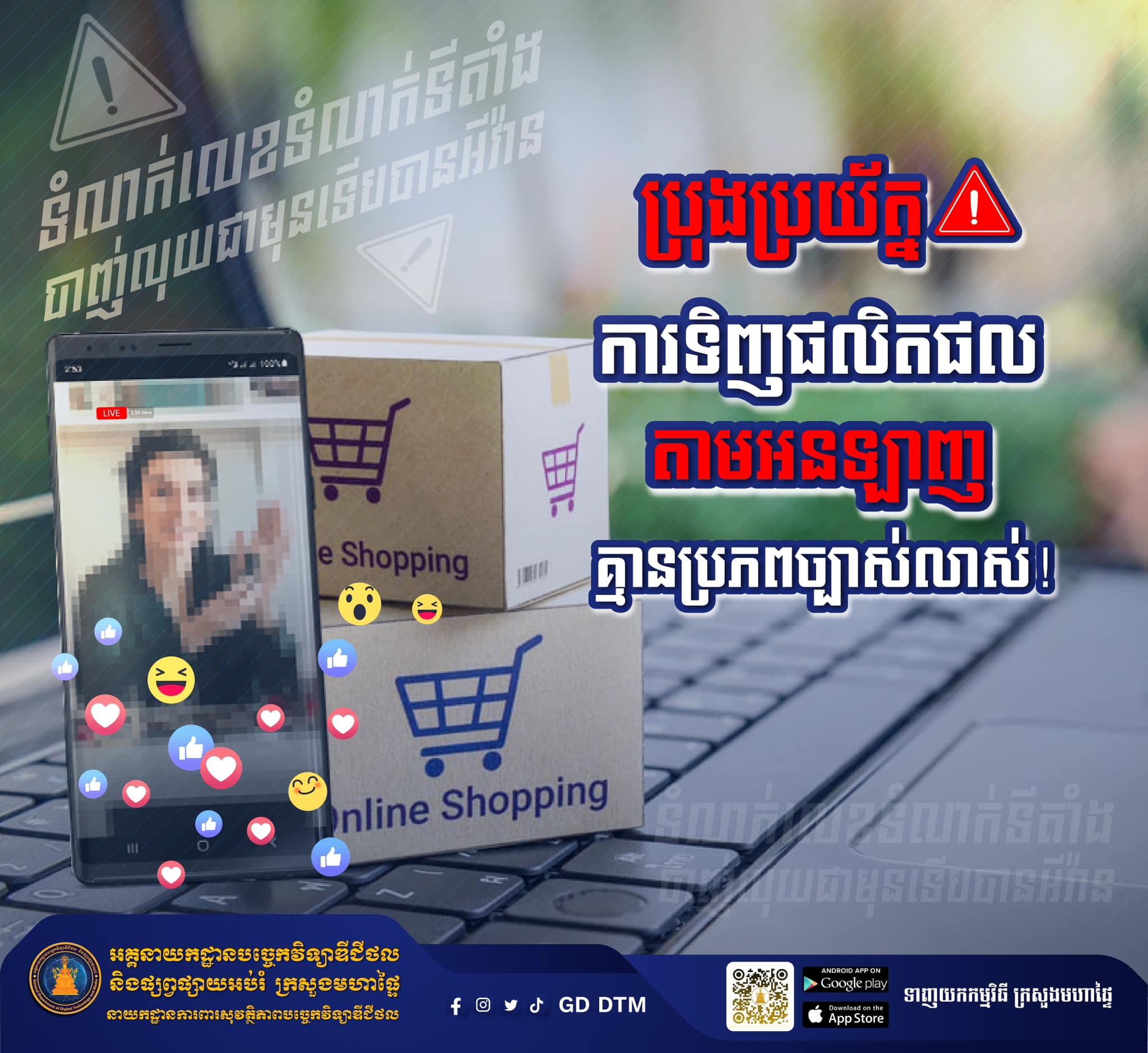 កន្លងទៅនេះ អគ្គនាយកដ្ឋានបច្ចេកវិទ្យាឌីជីថល និង ផ្សព្វផ្សាយអប់រំ ធ្លាប់បានជូនដំណឹងឱ្យប្រជាពលរដ្ឋបង្កើនការប្រុងប្រយ័ត្នជារឿយៗ ចំពោះការទិញផលិតផលតាមអនឡាញគ្មានប្រភពច្បាស់លាស់។