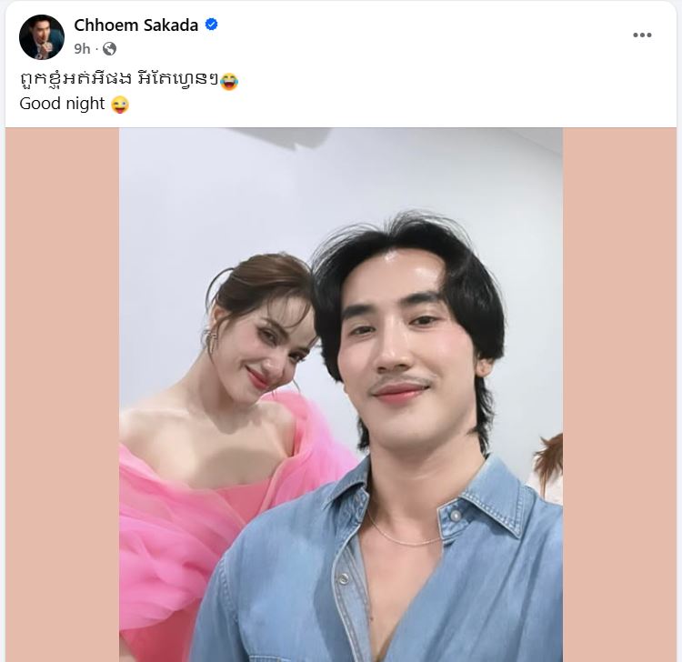 សារនោះ លោក ឆឹម សក្កដា បានរៀបរាប់ភ្ជាប់ជាមួយរូបភាពដ៏ផ្អែមល្ហែមរបស់អ្នកទាំងពីរថា ៖ «ពួកខ្ញុំអត់អីផង អីតែហ្វេនៗ Good night»។ ក្នុងនោះ ក៏បានឃើញអ្នកនាង ពេជ្រ សោភា បានចូលបញ្ចេញមតិក្រោមការបង្ហោះរបស់លោក ឆឹម សក្កដា ដែរថា ៖ «មិនមានអ្វីទេ»៕