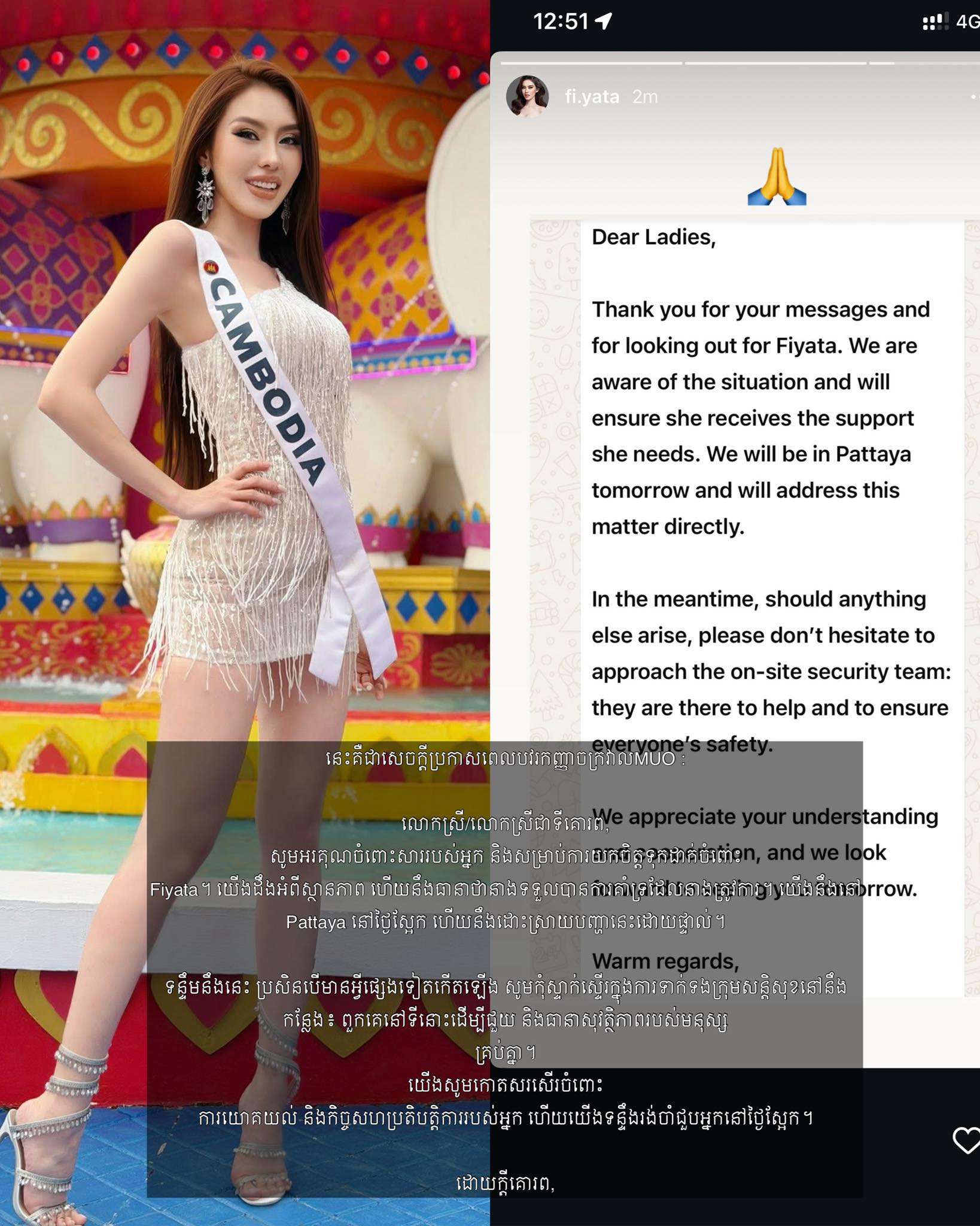 មិនមានឱកាសចូល Top ! ហ្វីយ៉ាតា ចុះពីលើឆាកប្រកួត MU ភ្លាម ផុសសារដ៏មានន័យនេះផ្ញើជូនអ្នកគាំទ្រកម្ពុជា