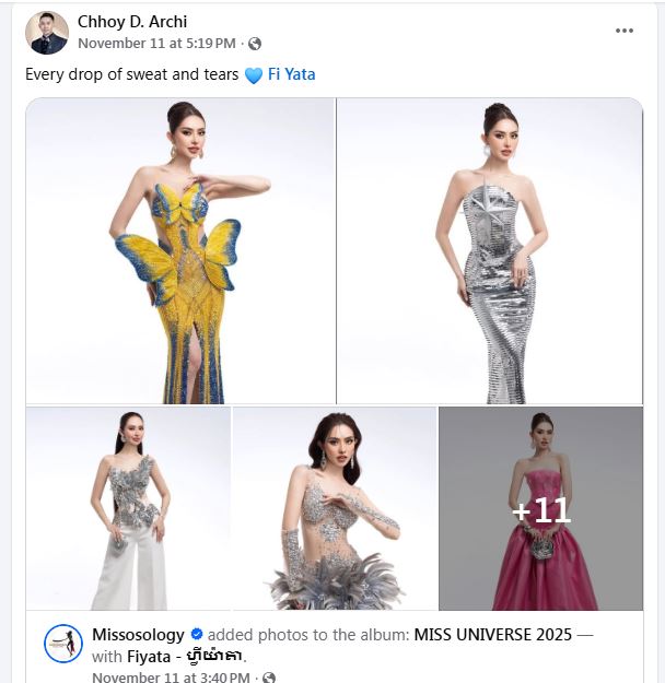 រយៈពេល ១២ ថ្ងៃហើយ ដែលបវរកញ្ញា ហ្វីយ៉ាតា កំពុងស្ថិតក្នុងដំណើរការប្រកួតលើឆាកអន្តរជាតិ Miss Universe 2025 នៅប្រទេសថៃ ដោយពីមួយថ្ងៃទៅមួយថ្ងៃ បវរកញ្ញារូបនេះ កាន់តែបង្ហាញពីសក្កានុពល និង ភាពជឿជាក់ រឹងមាំស្វាហាប់ក្នុងដំណើរការប្រកួត ទាំងទំនាក់ទំនង និង រៀបចំខ្លួនស្អាតឆ្វាចៗលេចធ្លោខ្លាំង បើទោះបីជាជួបបញ្ហាខ្លះៗប៉ះផ្លូវអារម្មណ៍អំឡុងពេលប្រកួតនេះក៏ដោយ។