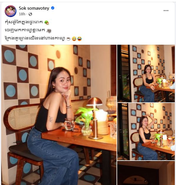 ដោយឡែក ថ្មីៗនេះ អ្នកម៉ាក់រូបស្រស់ សុខ សោម៉ាវត្តី បានធ្វើឱ្យមហាជនអ្នកគាំទ្រលើបណ្ដាញសង្គមប្លែកចិត្ត ដែលធ្លាប់តែឃើញនាងបង្ហាញជីវិតបែបអ្នកម៉ាក់រឹងមាំ ២ នាក់កូនស្រីបណ្ដូលចិត្ត តែលើកនេះនាងបង្ហាញសកម្មភាពធ្វើខ្លួនខ្ញង់ៗចេញក្រៅបែបយុវវ័យម្ដង ថែមទាំងពោលពាក្យជុំវិញរឿងស្នេហា ហាក់ដូចចង់គិតគូររកអ្នកស្អំបេះដូងថ្មីអ៊ីចឹង។ ក្នុងនោះ អ្នកនាង សុខ សោម៉ាវត្តី បានបង្ហោះរៀបរាប់ថា ៖ «កុំសំងំតែក្នុងផ្ទះពេក ចេញមកកាហ្វេខ្លះមក ក្រែងគូព្រេងយើងនៅហាងកាហ្វេ»៕