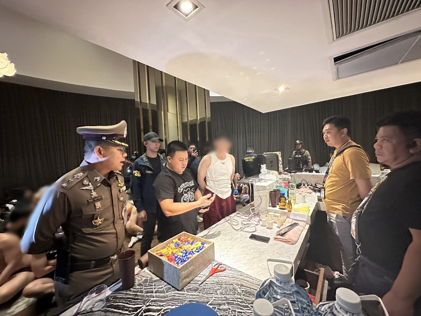 តាមព័ត៌មានបានឱ្យដឹងថា កម្មវិធីជប់លៀងនេះបានធ្វើឡើងនៅក្នុងបន្ទប់សណ្ឋាគារមួយកន្លែង នាតំបន់ Watthana ទីក្រុងបាងកក។ ប៉ូលិសបានចុះទៅត្រួតពិនិត្យក៏ឃើញថា អ្នកចូលរួមទាំងអស់ភាគច្រើនសុទ្ធតែជាមនុស្សប្រុស មានទាំងជនជាតិថៃផង និង ជនជាតិបរទេសផង សរុបចំនួន ១២៤ នាក់។ ក្នុងនោះ ប៉ូលិសបានចោទប្រកាន់ទៅលើមនុស្ស ៣១ នាក់ ក្នុងករណីមានថ្នាំញៀននៅនឹងខ្លួន ៦៦ នាក់ទៀតក្នុងករណីប្រើប្រាស់គ្រឿងញៀន។ ចំណែក ២៧ នាក់ផ្សេងទៀត មិនត្រូវរកឃើញថាបានពាក់ព័ន្ធជាមួយនឹងគ្រឿងញៀនឡើយ។