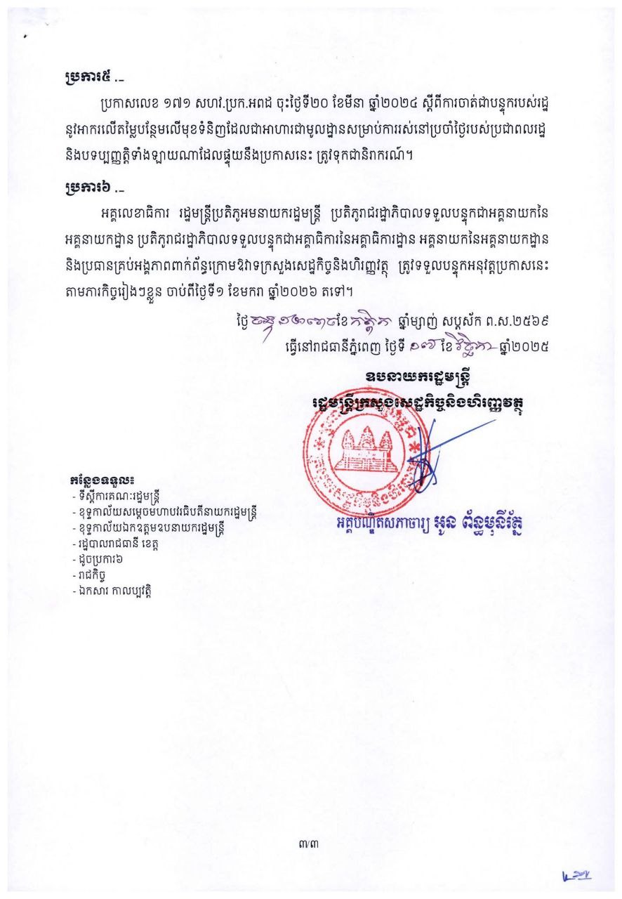 ដំណឹងសំខាន់! អាករលើមុខទំនិញផលិតក្នុងស្រុកច្រើនមុខ ត្រូវចាត់ជាបន្ទុករបស់រដ្ឋ ចាប់ពីថ្ងៃ ១ ធ្នូ ដល់ដាច់ឆ្នាំ ២០២៨