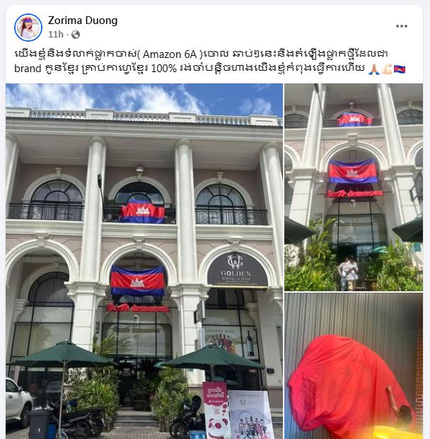 ក្នុងនោះ កញ្ញា ឌួង ហ្សូរីដា និង ប្អូនស្រី បានបង្ហោះរៀបរាប់ថា ៖ «យើងខ្ញុំនឹងទម្លាក់ស្លាកចាស់ (Amazon 6A)ចោល ឆាប់ៗនេះនឹងដំឡើងស្លាកថ្មីដែលជា brand កូនខ្មែរ គ្រាប់កាហ្វេខ្មែរ 100% រង់ចាំបន្តិចហាងយើងខ្ញុំកំពុងធ្វើការហើយ»។ «សូមទុកពេលឱ្យប្អូនៗ និង បងប្រុសខ្ញុំ គាត់ធ្វើការផ្លាស់ប្តូរ និង រៀបចំឯកសារការងារទៅតាមផ្លូវច្បាប់ ព្រោះការផ្លាស់ប្តូររបស់យើងមិនត្រឹមតែម៉ាកយីហោរបស់សៀមទេ គឺគ្រប់យ៉ាងត្រូវតែប្រើផលិតផលខ្មែរ និង ជៀសឱ្យផុតពីផលិតផលសៀមចង្រៃឱ្យអស់…!»៕