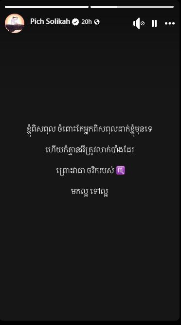 ស្របពេលត្រៀមវិលត្រឡប់មកវាយលុកឆាកតន្រ្តីវិញនេះដែរ អ្វីដែលធ្វើឱ្យមហាជនកំពុងផ្ទុះចាប់អារម្មណ៍ចំពោះតារាចម្រៀងស្រីរូបនេះទៀត ខណៈបានឃើញអ្នកនាងបង្ហោះសារមួយលើ Story ហ្វេសប៊ុកយ៉ាងភ្ញាក់ផ្អើល ដែលនិយាយពីអត្តចរិតខ្លះៗរបស់ខ្លួននាង។ ក្នុងនោះ អ្នកនាង ពេជ្រ សូលីកា បានរៀបរាប់ថា ៖ «ខ្ញុំពិសពុល ចំពោះតែអ្នកពិសពុលដាក់ខ្ញុំមុនទេ ហើយក៏គ្មានអីត្រូវលាក់បាំងដែរ ព្រោះវាជាចរិតរបស់ Scorpio មកល្អ ទៅល្អ»៕