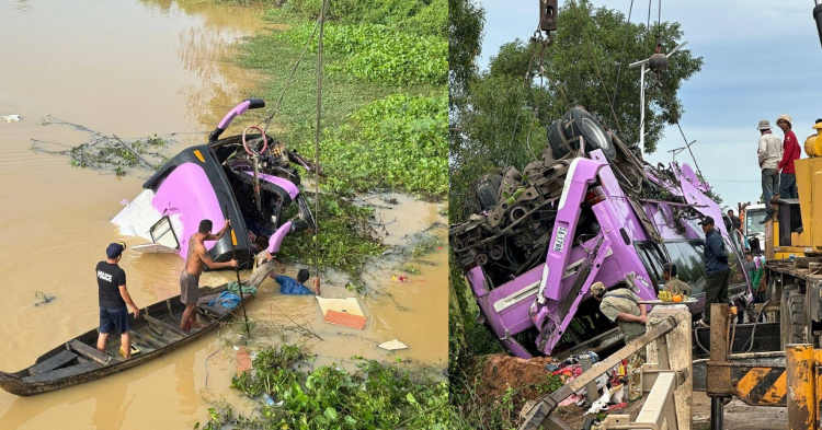 អាប់ដែតថ្មី! ពេលនេះឡានក្រុងធ្លាក់ទឹកនៅកំពង់ធំត្រូវបានស្ទូចចេញ រកឃើញអ្នកស្ល-ា//ប់ ១៣ នាក់ របួស ២៤ នាក់ ហើយនេះជាការសន្និដ្ឋានមូលហេតុបឋម