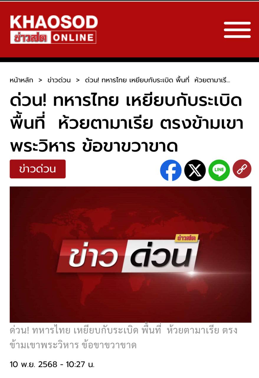 នៅថ្ងៃទី ១០ ខែវិច្ឆិកា ឆ្នាំ ២០២៥ នេះ សារព័ត៌មាន Khaosod បានរាយការណ៍ឱ្យដឹងថា ទាហានថៃមួយរូបទៀតហើយបានដើរជាន់មីនបណ្តាលឱ្យដាច់ជើងខាងស្តាំម្ខាង នៅតំបន់ទល់មុខប្រាសាទព្រះវិហារ។