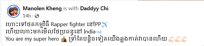 ក្នុងនោះ សូម្បីតែអ្នកនាង ម៉ាណូឡែន ក៏បានបង្ហាញអារម្មណ៍ទៅកាន់ស្វាមី ដោយបានបង្ហោះសារថា៖ «ហោះទៅថតកម្មវិធី Rapper fighter នៅ PP ហើយហោះមកមើលថែប្រពន្ធនៅ India You are my super hero ទ្រាំតែបន្តិចទៀតយើងឆ្លងកាត់វាបានហើយ»៕