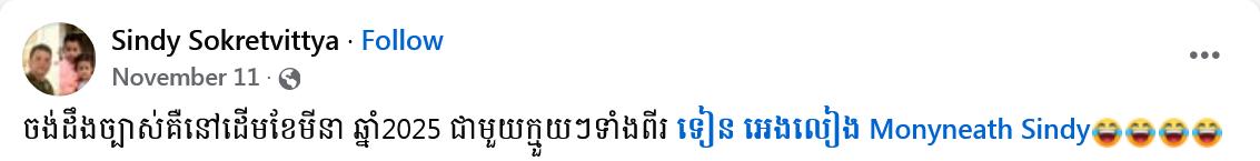 មកដល់ពេលនេះ រយៈពេលជាង ១ ឆ្នាំ ហើយ ដែលតារាប្រុសសំឡេងផ្អែមលោក ខាយ និង កញ្ញា មុន្នីនាថ បានបញ្ចប់ឈ្មោះជាសង្សារក្លាយជាគូដណ្ដឹង កាលពីថ្ងៃទី ២៧ ខែកញ្ញា ឆ្នាំ ២០២៣ កន្លងទៅ។