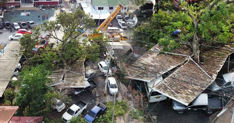 នៅថៃ! ព្យុះបោកបក់ រលើងដើមឈើធំមួយដើម សង្កត់លើឡានប៉ូលិស ខូចខាតអស់ ១២ គ្រឿង