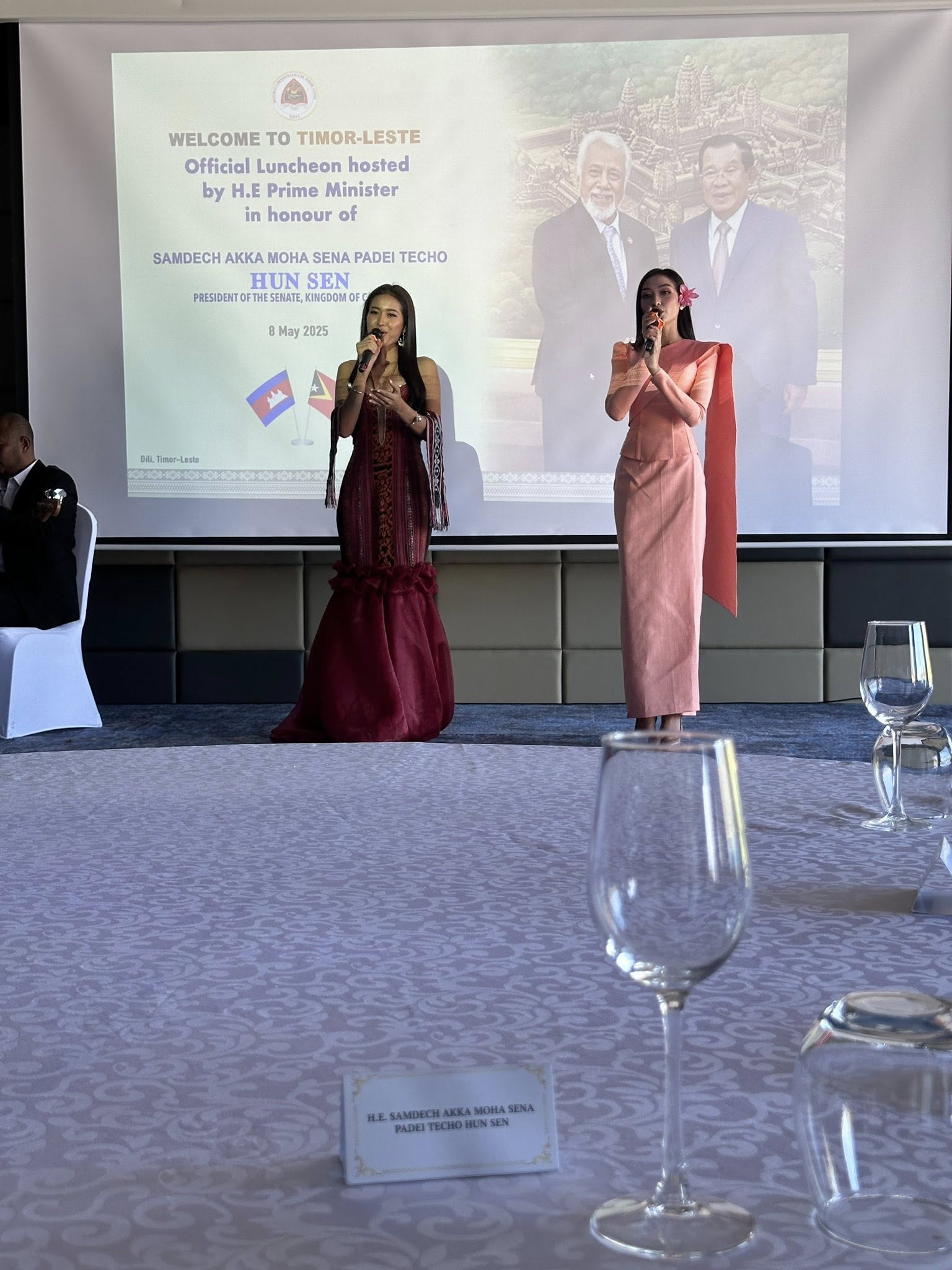ក្នុងដំណើរទៅកាន់ប្រទេសទីម័រពេលនោះដែរ កញ្ញា ពេជ្រ វត្តីសារ៉ាវឌ្ឍី និង កញ្ញា ហុក សារិតុលា ក៏បានប្រាប់ឱ្យដឹងថា អ្នកទាំងពីរ ទៅដើម្បីតំណាងឱ្យសិល្បករកម្ពុជា ក្នុងការសម្តែងកិច្ចស្វាគមន៍ដំណើរទស្សនកិច្ចរបស់ សម្តេចអគ្គមហាសេនាបតីតេជោ ហ៊ុន សែន ទៅកាន់ប្រទេសទីម័រខាងកើត។