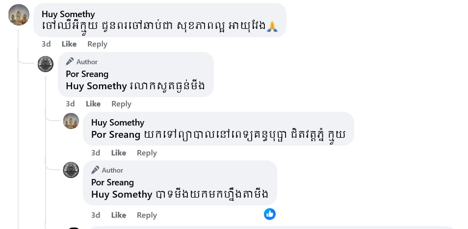 ចំពោះដំណឹងដ៏ក្រៀមក្រំ និង គួរឱ្យសោកស្ដាយនេះ មហាជន និង អ្នកសិល្បៈជាច្រើន បានបង្ហាញការចូលរួមរំលែកទុក្ខ និង ជួយលើកទឹកចិត្តដល់តារាចម្រៀងស្រីរូបនេះ និង ក្រុមគ្រួសារផងដែរ។