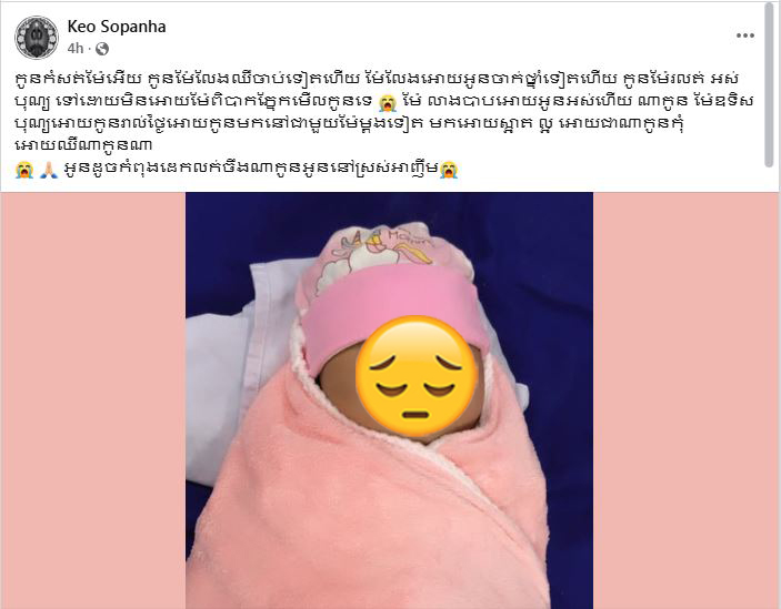 ពេលនេះដែរ ងាកមើលហ្វេសប៊ុករបស់អ្នកនាង កែវ សុបញ្ញា ក៏បានបង្ហោះសារមួយរៀបរាប់ពីដំណឹងបាត់បង់កូនស្រីជាទីស្រឡាញ់ទាំងឈឺចាប់ពេញដោយក្ដីអាល័យ និង បានបួងសួងសូមឱ្យកូនស្រីមកនៅជាមួយម្ដងទៀត។