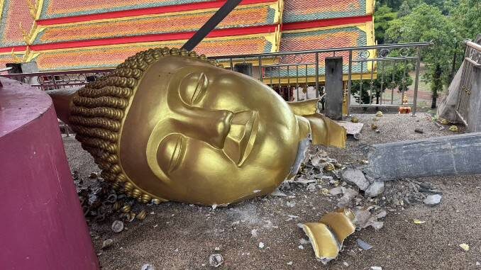 កាលពីថ្ងៃទី ១ ខែឧសភា ឆ្នាំ ២០២៥ កន្លងទៅ ព្រះពុទ្ធបដិមាដ៏ធំមួយអង្គនៅប្រទេសថៃ ត្រូវព្យុះភ្លៀងបោកបក់បណ្តាលឱ្យបាក់ព្រះកេសធ្លាក់មកនឹងដី លុះគេប្រើឡានស្ទូចលើកឡើងដើម្បីជួសជុល ស្រាប់តែធ្លាក់បែកខ្ទេចម្តងទៀត។