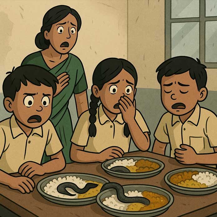 នៅឥណ្ឌា! សិស្សសាលាជាង ១០០ នាក់ធ្លាក់ខ្លួនឈឺ ក្រោយចុងភៅដឹងថាមានសត្វពស់ងាប់ក្នុងម្ហូបហើយ នៅតែយកឱ្យសិស្សញ៉ាំទៀត