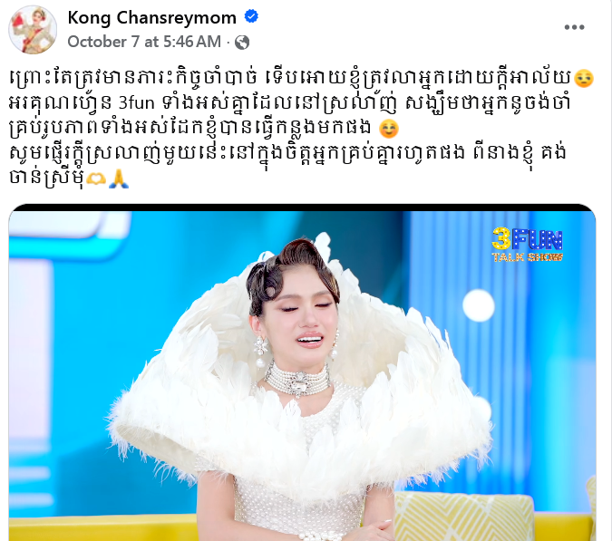 បាត់មុខពី 3Fun មួយរយៈ! ទីបំផុត គង់ ចាន់ស្រីមុំ ទម្លាយមូលហេតុចាកចេញពីកម្មវិធីនេះហើយ ក្រោយធ្វើជាពិធីការិនី ៦ ឆ្នាំ