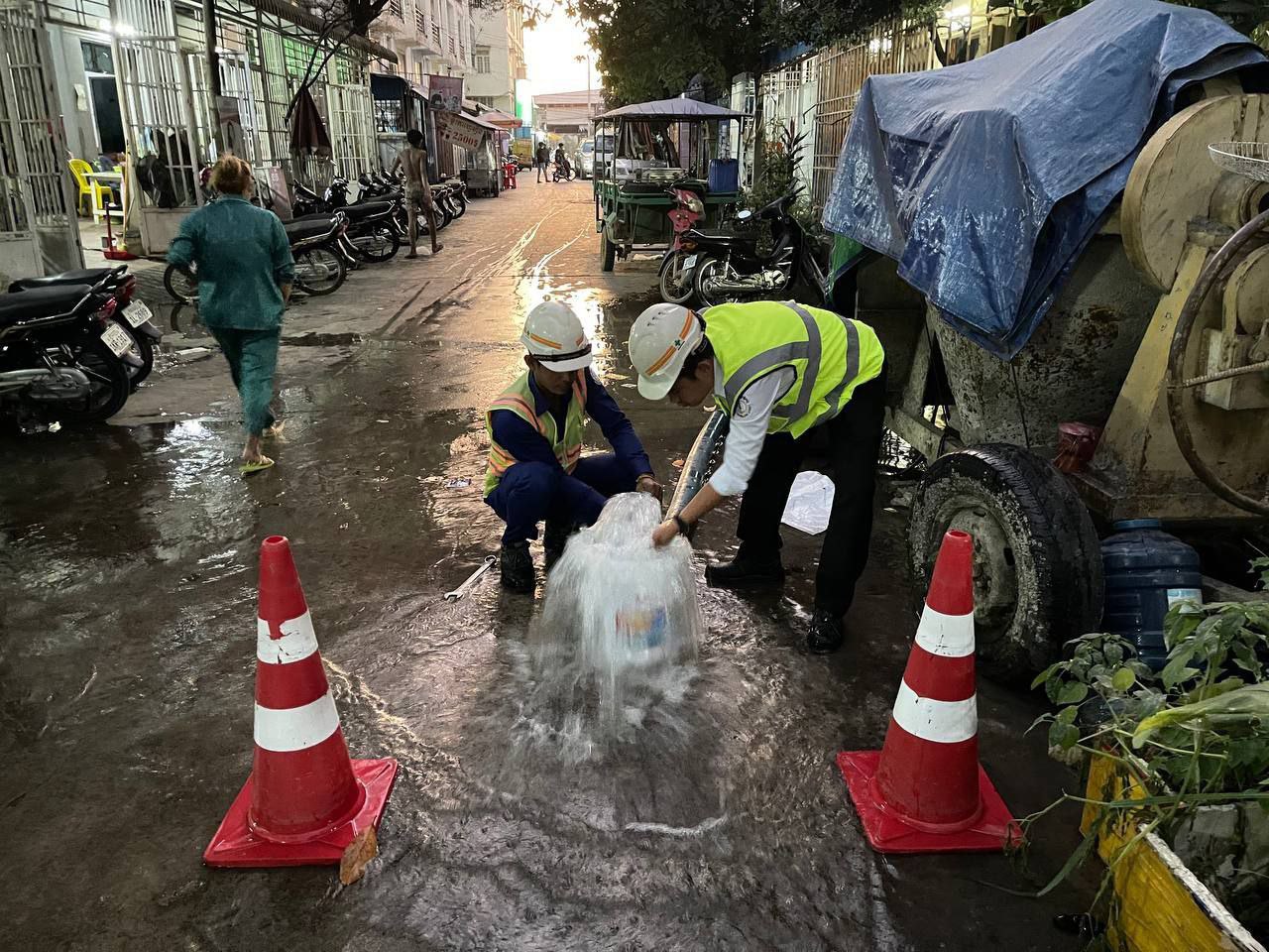 រដ្ឋាករទឹក គ្រោងកាត់ភ្ជាប់បំពង់ចែកចាយទឹកថ្មីទំហំ ៦៣មម ចំនួនមួយទីតាំងនៅលើចិញ្ចើមផ្លូវជាតិលេខ៥ ដែលនឹងត្រូវផ្អាកការផ្គត់ផ្គង់ទឹកចាប់ពីផ្លូវលេខ ១១០R ដល់ផ្លូវលេខ ១១៤R នៅក្នុងសង្កាត់ច្រាំងចំរេះទី១ និង សង្កាត់ច្រាំងចំរេះទី២ ខណ្ឌឫស្សីកែវ រាជធានីភ្នំពេញ នៅយប់ថ្ងៃសុក្រ ទី ១៧ ខែតុលា ឆ្នាំ ២០២៥។ ការងារនេះ តម្រូវឱ្យរដ្ឋាករទឹកផ្អាកការផ្គត់ផ្គង់ទឹកមួយរយៈពេល ចាប់ពី ម៉ោង ២២:០០ នាទីយប់ រហូតដល់បញ្ចប់ការដ្ឋាន និង អាចធ្វើឱ្យគុណភាពទឹកមានភាពល្អក់កករក្នុងរយៈពេលខ្លី៕