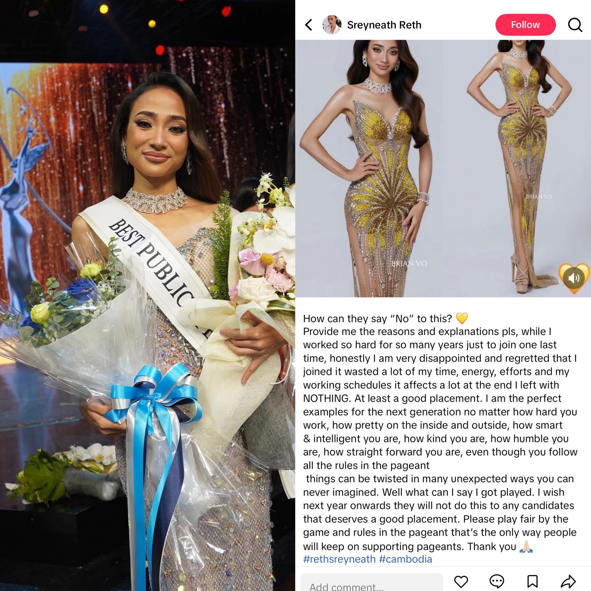 ដោយឡែក មកដល់ថ្មីៗនេះ ក្រោយប្រកួតចប់ជិត ១ ខែ តាមរយៈការចែករំលែកពីការបង្ហោះមួយរបស់បវរកញ្ញា រ៉េត ស្រីនាថ លើបណ្ដាញសង្គម រៀបរាប់ពីអារម្មណ៍ពិតចំពោះលទ្ធផលនៃការប្រកួតរបស់ខ្លួនយ៉ាងភ្ញាក់ផ្អើល ដោយនាងបង្ហាញការខកចិត្ត និង សោកស្ដាយខ្លាំងដែលចូលរួមប្រកួតក្នុងកម្មវិធីនេះ ខណៈនាងតាំងចិត្តប្រឹងប្រែងពង្រឺងសមត្ថភាពជាច្រើនឆ្នាំ ដើម្បីចូលរួមការប្រកួតលើកចុងក្រោយ ដែលខ្ជះខ្ជាយទាំងកម្លាំងកាយចិត្ត ពេលវេលា ការងារ តែចុងក្រោយមិនទទួលបានអ្វីសោះ។