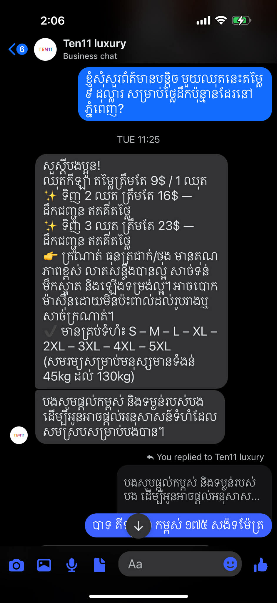 ផេកនេះធ្វើការឆ្លើយឆ្លងដូចអ្នកលក់ធម្មតា ហើយរាល់ការទិញតម្រូវបង់លុយមុន តែក្រោយពេលបង់លុយរួច ផេកនេះនឹងក៏ធ្វើការប្លុកអ្នកទិញចោលតែម្តង។ ជាក់ស្តែង ថ្មីៗនេះមានករណីអតិថិជនម្នាក់បានបង្ហាញពីដំណើរដើមទងដែលខ្លួនបានផុងខ្លួនចាញ់បោកផេកមួយនេះ ដោយបានឆាតជជែកគ្នាក្នុងការទិញសម្លៀកបំពាក់ ប៉ុន្តែផេកនេះបានលួងលោមឱ្យបង់លុយមុន លុះពេលអ្នកទិញបានបង់លុយរួច ក៏ឆាតលែងតប មិនបានអីវ៉ាន់ហើយថែមទាំងប្លុកអ្នកទិញចោលទៀត។