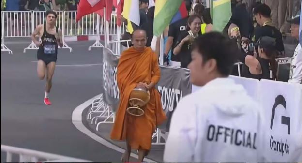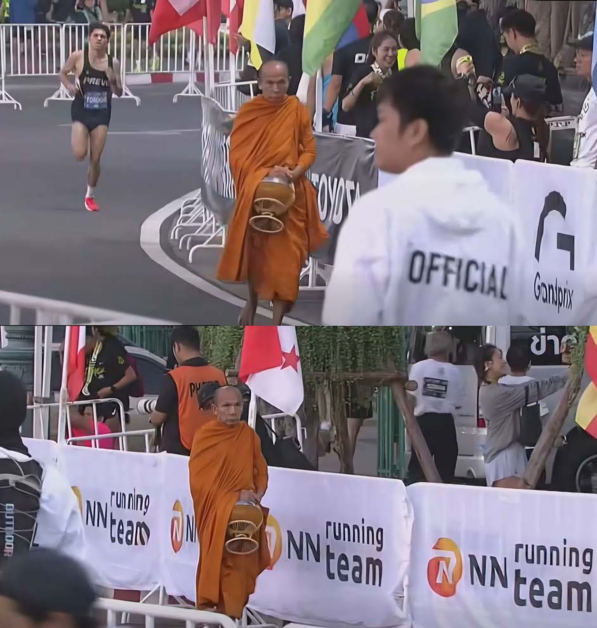 យ៉ាងណាមិញ អ្វីដែលផ្ទុះការចាប់អារម្មណ៍ខ្លាំងក្នុងកម្មវិធីនោះ មិនមែនអ្នកដែលចូលរួមរត់ម៉ារ៉ាតុងនោះឡើយ ប៉ុន្តែជាវត្តមានរបស់ព្រះសង្ឃមួយអង្គ ដែលឃើញនិមន្តបិណ្ឌបាតលើផ្លូវដែលគេរៀបចំសម្រាប់អ្នករត់ម៉ារ៉ាតុង ទាំងដែលអ្នកចូលរួមដទៃកំពុងរត់ពេញផ្លូវ។