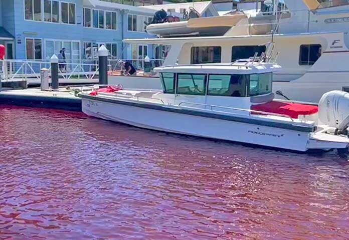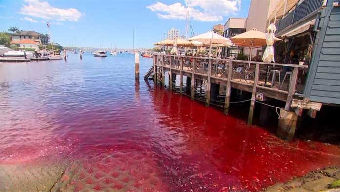 ថ្មីៗនេះមហាជនជាច្រើននៅក្រុងស៊ីដនី ប្រទេសអូស្ត្រាលី កំពុងតែមានការព្រួយបារម្ភ ក្រោយឃើញទឹកសមុទ្រនៅម្តុំកំពង់ផែ Karining Clover Bay ដែលជាតំបន់អ្នកមានប្រចាំទីក្រុង បានប្រែពណ៌ទៅជាក្រហមឆ្អិនឆ្អៅដូចជាឈាម។