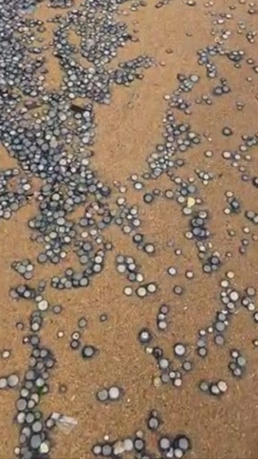 អ្នកជំនាញខាងលើឈ្មោះ Lu Gang ជាប្រធានប្រចាំវិទ្យាស្ថានស្រាវជ្រាវតំបន់ដីសើមនៅ Haikou ដោយលោកបានបញ្ជាក់ថា សត្វចម្លែករាងដូចកាក់លុយទាំងនោះ តាមពិតជាប្រភេទខ្ញែរសមុទ្រម៉្យាងហៅថា silver coin jellyfish ឬ blue button jellyfish ដែលជាប្រភេទខ្ញែរសមុទ្រដ៏គ្រោះថ្នាក់មួយ។