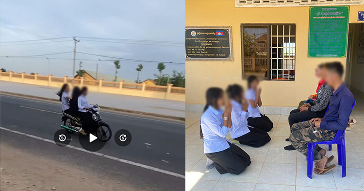 នៅស្វាយរៀង! យុវតីសិស្សសាលា ៣ នាក់ ជិះម៉ូតូជ្រេចុះជ្រេឡើងលើដងផ្លូវ ត្រូវសមត្ថកិច្ចហៅអប់រំឱ្យលុតជង្គង់សុំទោសឪពុកម្ដាយនៅប៉ុស្ដិ៍