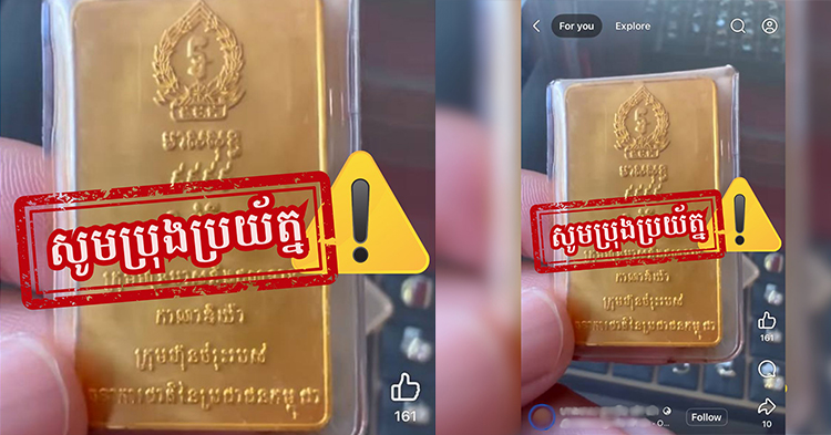 ប្រយ័ត្នចាញ់បោកគេ! ថ្មីៗនេះ មាសសន្លឹកមាន Logo ធនាគារជាតិ ត្រូវផេកផ្លូវការរបស់ធនាគារជាតិ ចេញបដិសេដមុននេះ