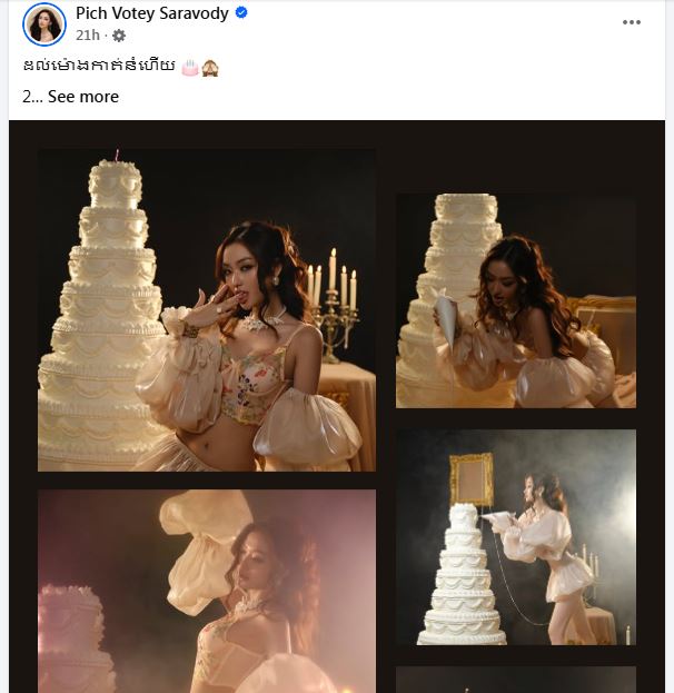 ដោយឡែក អ្វីដែលធ្វើឱ្យមហាជនអ្នកគាំទ្រចាប់អារម្មណ៍ចែករំលែកខ្លាំងលើរូបភាពប៉ុន្មានសន្លឹក ដែលបវរកញ្ញា ពេជ្រ វត្តីសារ៉ាវឌ្ឍី បានបង្ហោះក្រោយថ្ងៃកំណើត ជាមួយឈុតបែបសិចស៊ី លេងស្ទីលថតជាមួយនំខេកយ៉ាងស៊ីអារម្មណ៍ ដោយកំពុងផ្ទុះការបញ្ចេញមតិវែកញែកខ្លាំងពីមហាជនអ្នកលេងបណ្ដាញសង្គមផងដែរ៕