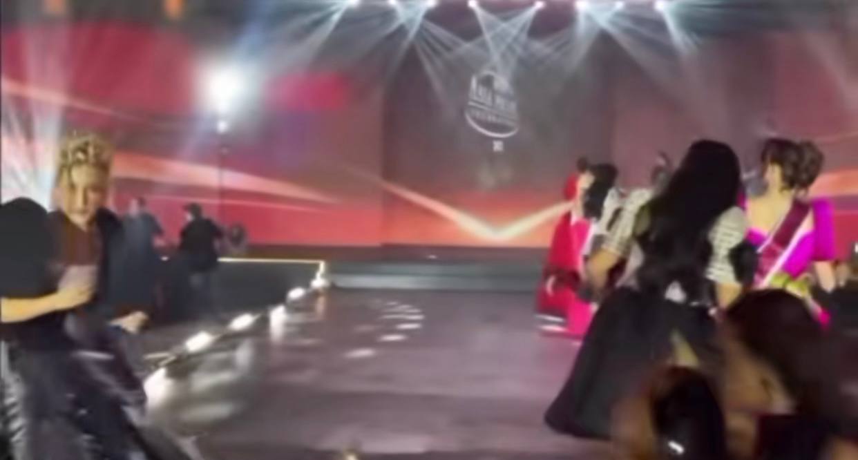 ក្នុងនោះ តាមរយៈវីដេអូ គេបានឃើញបវរកញ្ញាច្រើនប្រទេសកំពុងដើរនៅលើឆាក ស្រាប់តែរញ្ជួយដីបានកើតឡើងភ្លាម ជាហេតុធ្វើឱ្យគ្រប់គ្នារត់ប្រសាចចេញពីលើឆាក ដើម្បីរកកន្លែងសុវត្ថិភាព។