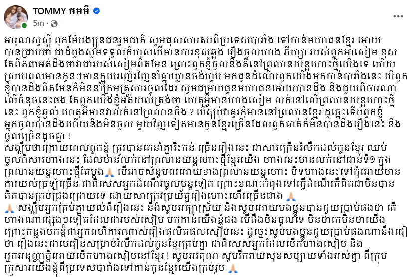 បើអាចសំណូមពរឱ្យខាងព្រលានយន្តហោះ បិទហាងនេះទៅកុំឱ្យមានការយល់ច្រឡំច្រើន ជាពិសេសអ្នកដំណើរចូលបន្តទៀត ព្រោះខណៈកំពុងទៅធ្វើដំណើរ គឺពិតជាមិនបានគិតបានគ្រប់ជ្រុងជ្រោយទេ ដោយសារត្រូវប្រយ័ត្នរឿងហោះហើរច្រើនជាង។ សង្ឃឹមអ្នកគ្រប់គ្នាយល់ពីរឿងនេះ និង សូមអធ្យាស្រ័យ និង សូមឱ្យបងប្អូនបានជួយប្រាប់ផងថា តើហាងណាផ្សេងៗទៀតដែលជារបស់សៀម មកកាន់យើងខ្ញុំផង បើដឹងមិនចូលទេ មិនថាគេមិនថាយើង ព្រោះកន្លងមកខ្ញុំជាអ្នកពហិការណាស់រឿងផលិតផលសៀមនេះ។