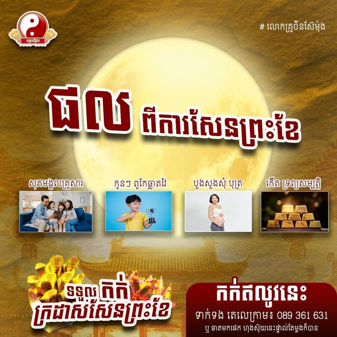 នៅថ្ងៃទី ០២ ខែតុលា ឆ្នាំ ២០២៥ នេះ តាមរយៈផេក ហុងស៊ុយ របស់លោកគ្រូចិនសែម៉ុង ដែលគេស្គាល់ថាជាគ្រូហុងស៊ុយបែបវិទ្យាសាស្ត្រដ៏មានប្រជាប្រិយភាព បានចែករំលែកពីផល (គោលបំណងធំ) សម្រាប់ថ្ងៃសែនព្រះខែចិន ដែលនឹងឈានចូលមកដល់ឆាប់ៗខាងមុខនេះ។