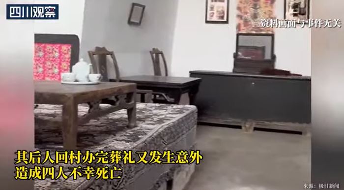 សារព័ត៌មាន MS News បានរាយការណ៍ពីករណីមួយនៅប្រទេសចិន ដែលគ្រួសារមួយឪពុកទើបតែស្លាប់ហើយ កូនប្រុស ៤ នាក់ចេញពីធ្វើបុណ្យក៏នាំគ្នាទៅដេកផ្ទះ ស្រាប់តែព្រឹកឡើងគេប្រទះឃើញដេកស្លាប់ទាំងអស់គ្នា។