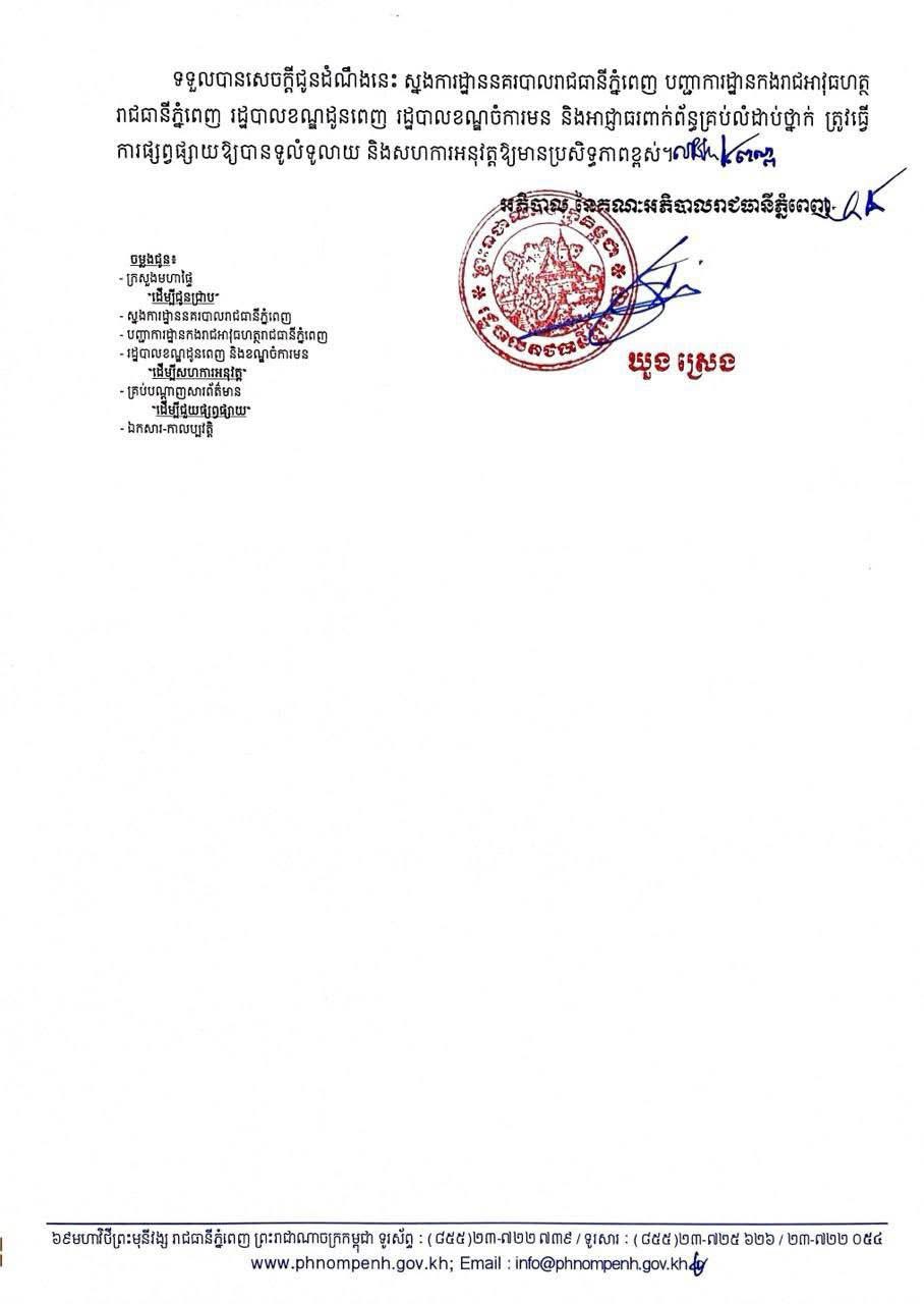 រកផ្លូវវាង! ខានស្អែកនេះ នៅភ្នំពេញ នឹងបញ្ចៀសចរាចរណ៍យានយន្តគ្រប់ប្រភេទ តាមតម្រាយផ្លូវទាំងនេះ ចាប់ពីម៉ោង ៥ ព្រឹក