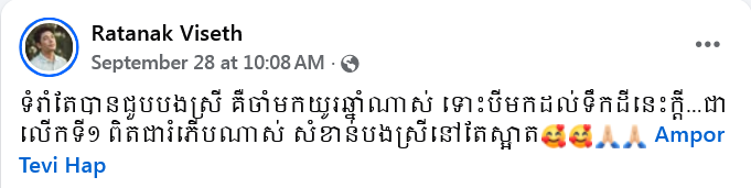 ក្នុងនោះ លោក រតនៈ វិសិដ្ឋ បាននិយាយអារម្មណ៍ចេញពីចិត្តថា៖ «ទម្រាំតែបានជួបបងស្រី គឺចាំមកយូរឆ្នាំណាស់ ទោះបីមកដល់ទឹកដីនេះក្តី! ជាលើកទី ១ ពិតជារំភើបណាស់ សំខាន់បងស្រីនៅតែស្អាត»៕