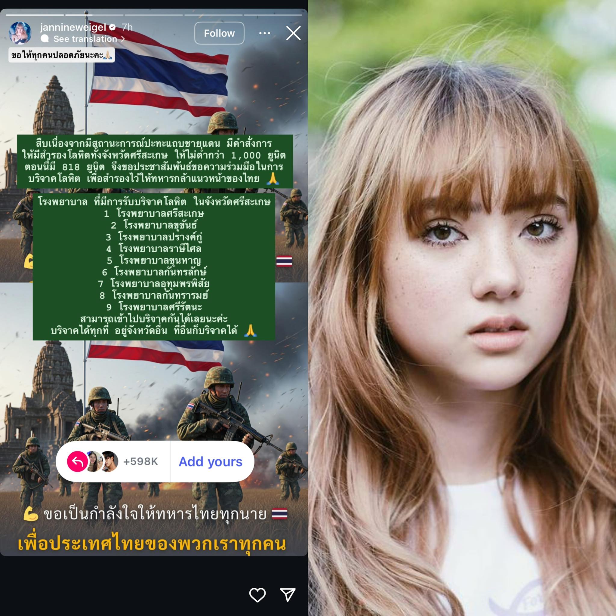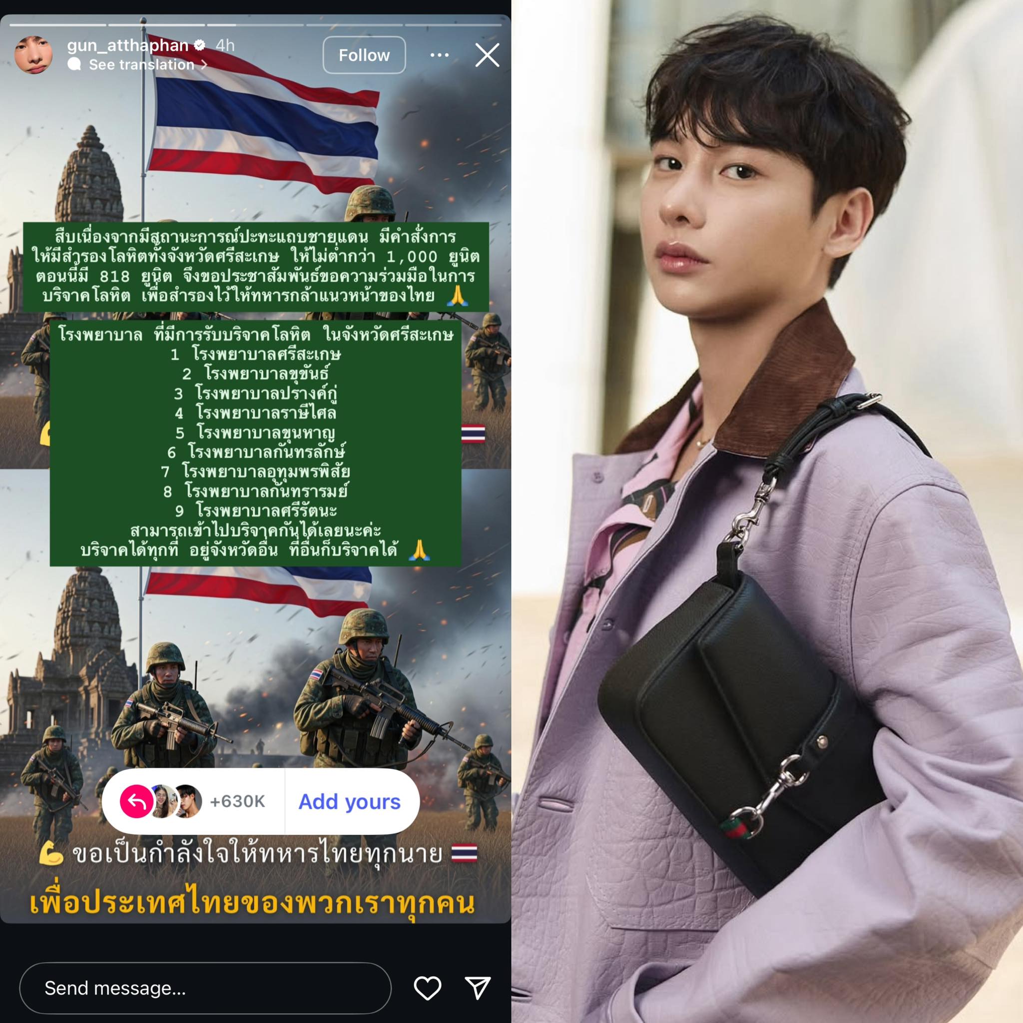 ដោយឡែក បើក្រឡេកទៅមើលតារាថៃប្រុសស្រីល្បីៗមួយចំនួន ក្រោយពីកងទ័ពប្រទេសខ្លួនបានផ្ទុះអាវុធដាក់ទាហានខ្មែរមុន និង បានចូលឈ្លានពានទឹកដីខ្មែរ ម្នាក់ៗបែរល្ងីល្ងើបាននាំគ្នាចេញមុខទាំងអគតិ លែងយល់ភាពត្រឹមត្រូវ យល់សប្រែជាខ្មៅ និង បានចោទកម្ពុជាថាជាអ្នកបង្កការបាញ់បោះមុន រហូតបង្ហោះសារពេញបណ្ដាញសង្គមគ្មានភាពអៀនខ្មាសសូម្បីបន្តិច។ តារាប្រុសស្រីទាំងនោះមានដូចជា ៖