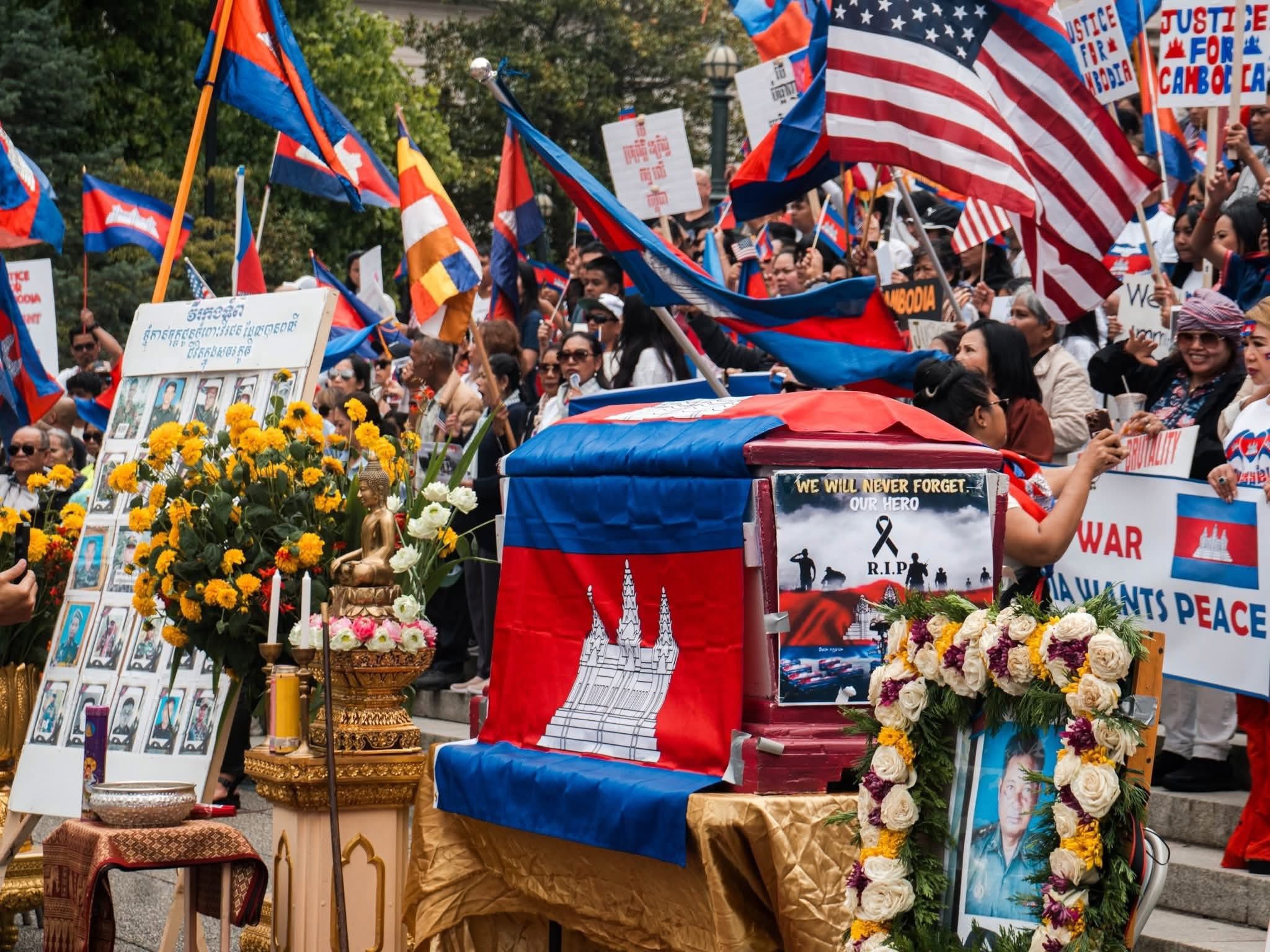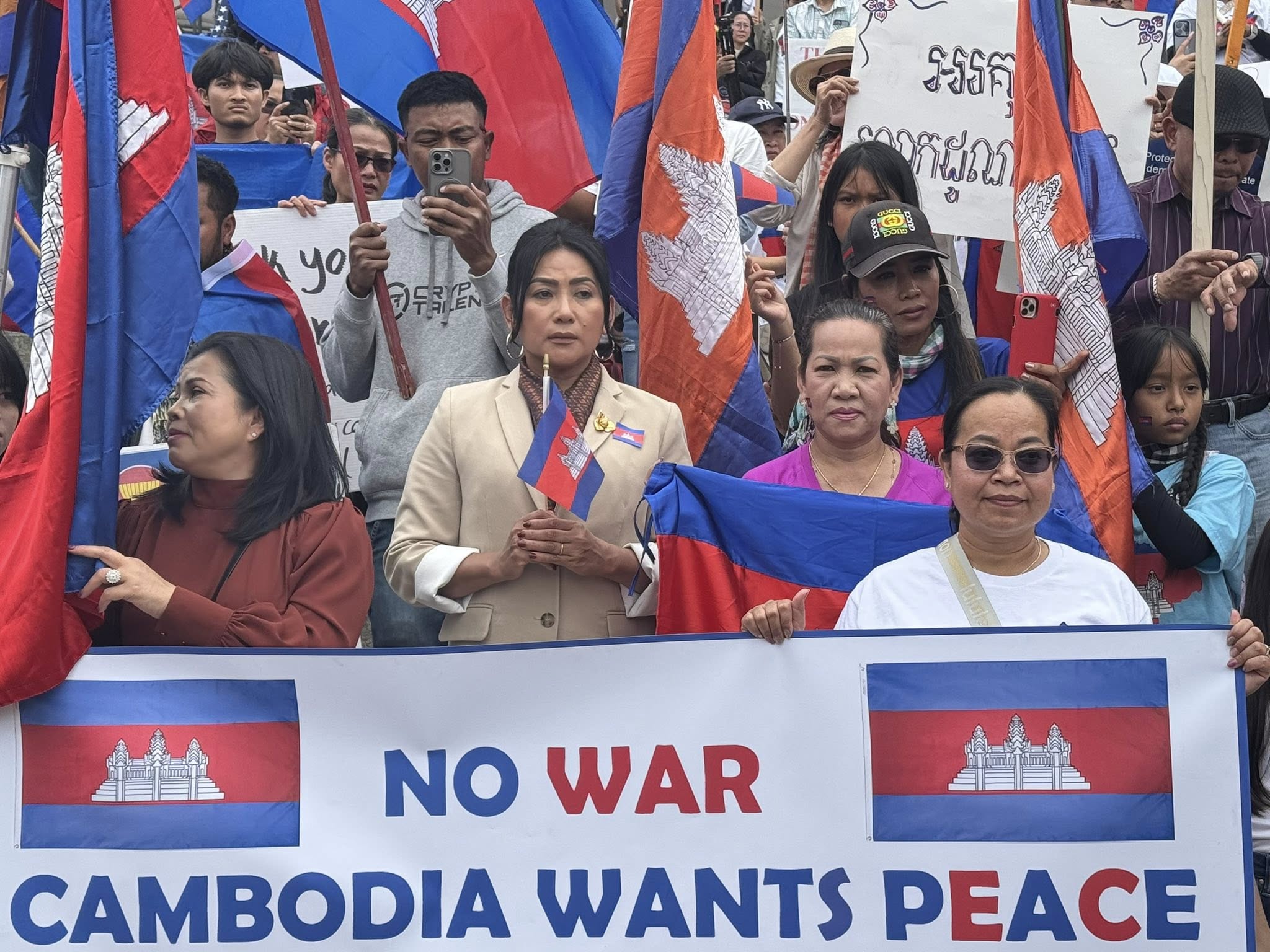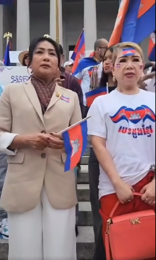 (វីដេអូ) តារាជើងចាស់ អម្ពរ ទេវី និង ម៉ៅ សុចន្ធី ព្រមទាំងបងប្អូនខ្មែរ ១៥០០ នាក់ ប្រមូលផ្ដុំគ្នានៅមុខវ៉ាស៊ីនតោន ទឹកដីអាមេរិក ដើម្បីតវ៉ាប្រឆាំងការឈ្លានពានរបស់ថៃ​ មកលើកម្ពុជា