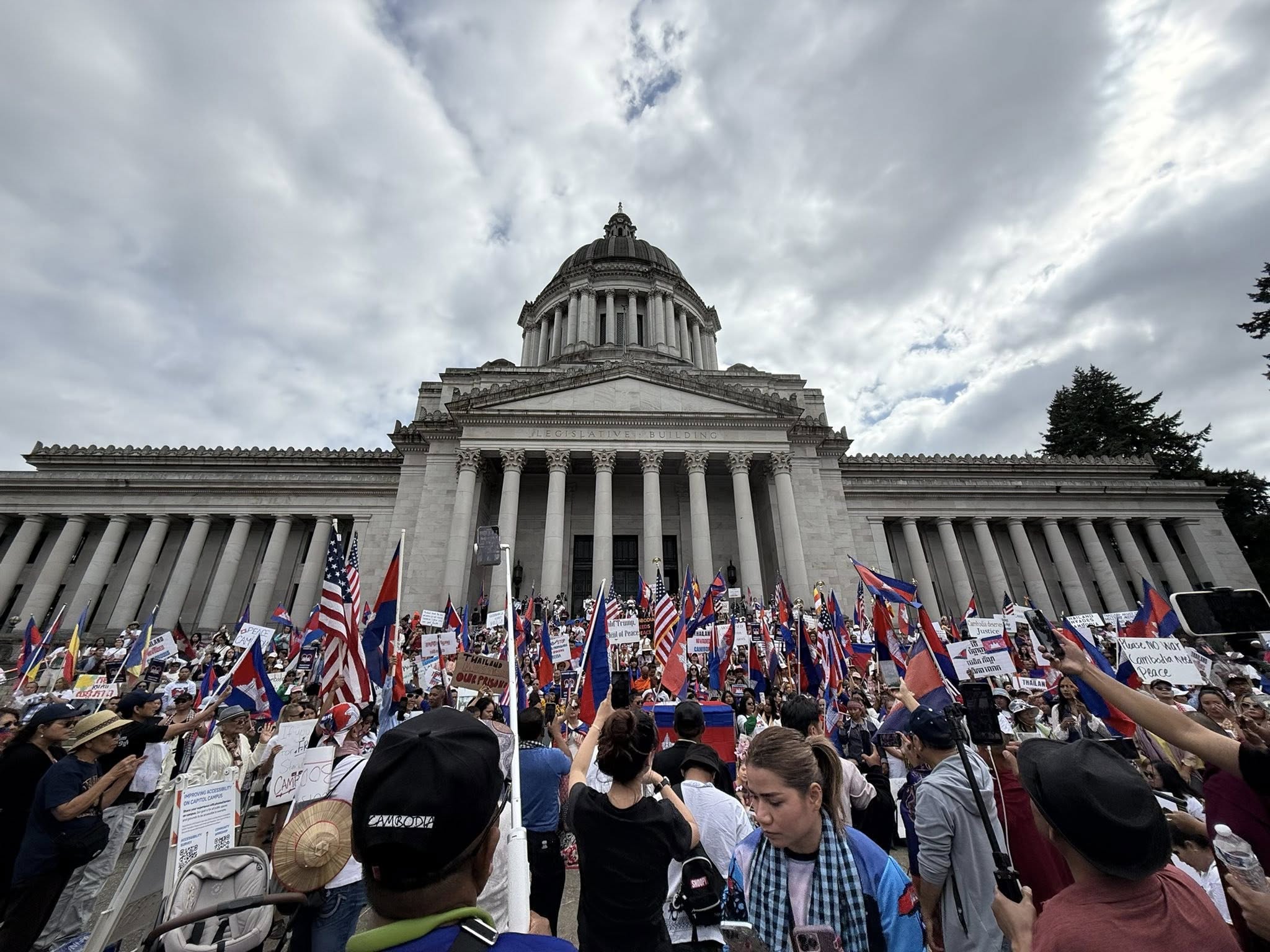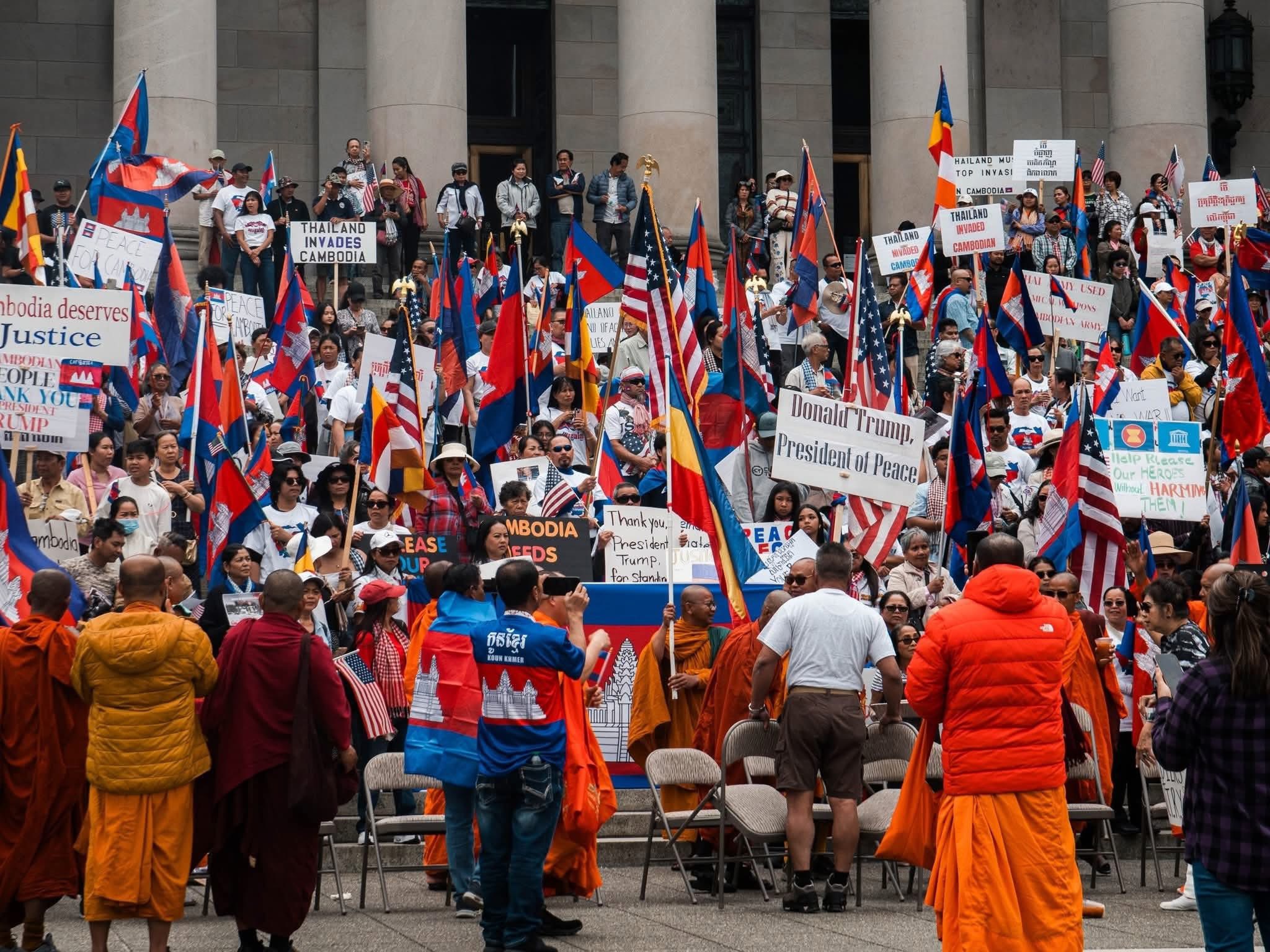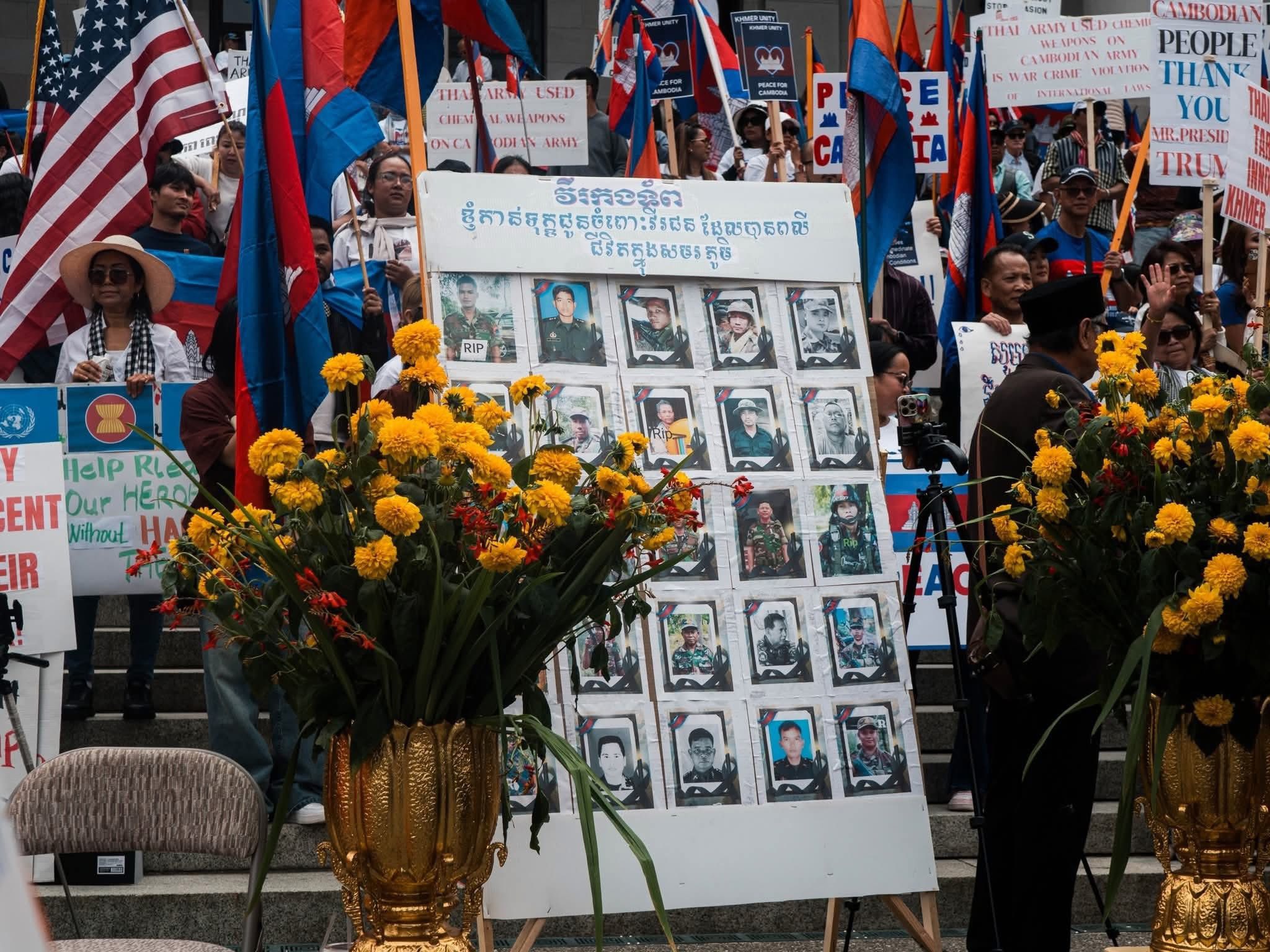 (វីដេអូ) តារាជើងចាស់ អម្ពរ ទេវី និង ម៉ៅ សុចន្ធី ព្រមទាំងបងប្អូនខ្មែរ ១៥០០ នាក់ ប្រមូលផ្ដុំគ្នានៅមុខវ៉ាស៊ីនតោន ទឹកដីអាមេរិក ដើម្បីតវ៉ាប្រឆាំងការឈ្លានពានរបស់ថៃ​ មកលើកម្ពុជា